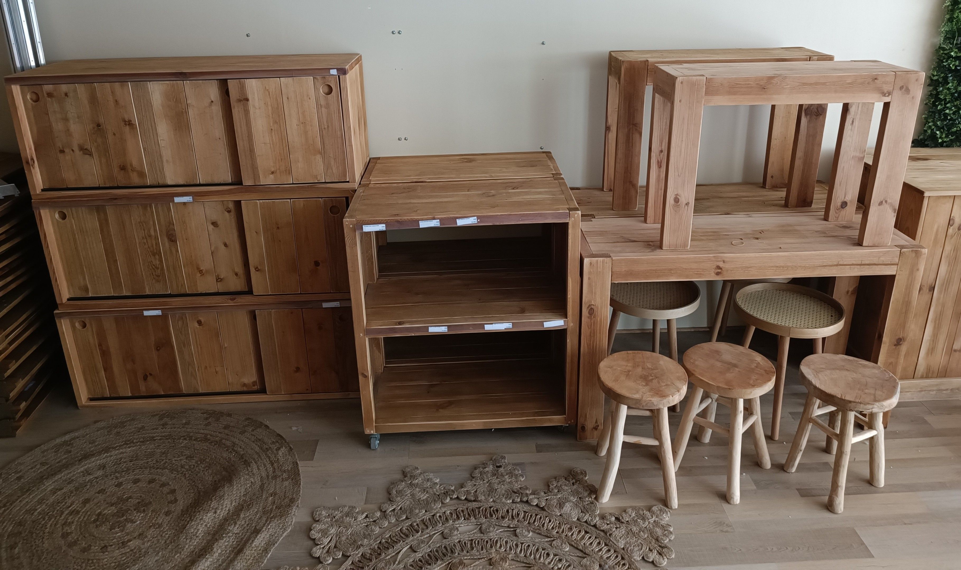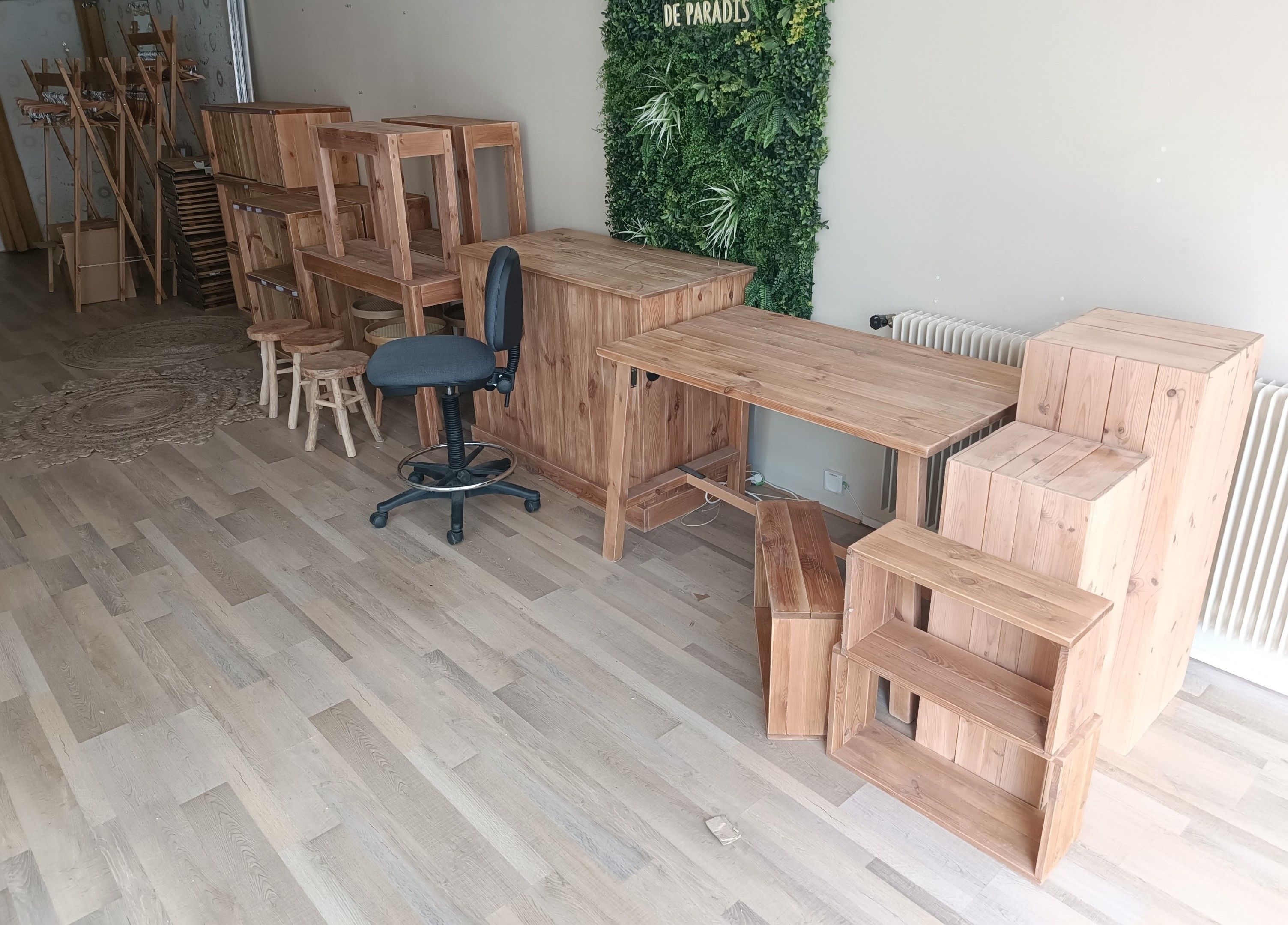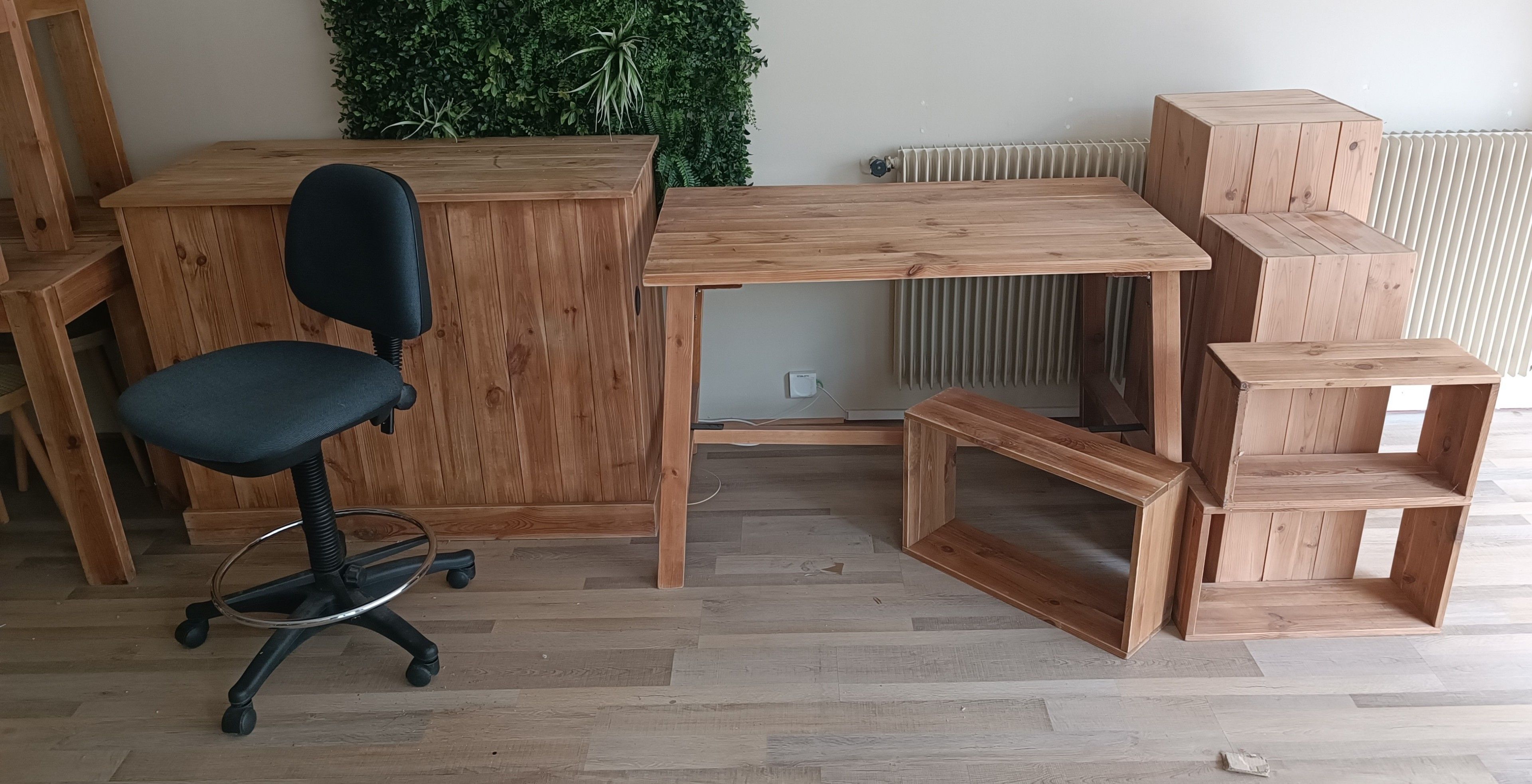 Wooden shop fittings: Counter: 90x118x59 - Table: 78x119x70 …