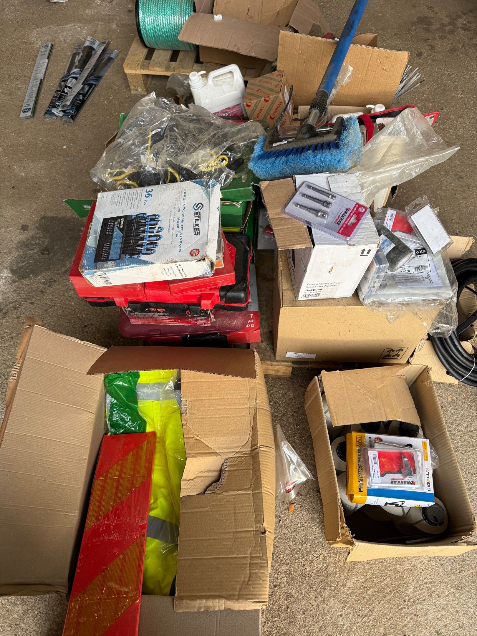 Stock: 7 pairs of COVERGUARD shoes - Trousers - 6 reflective rain jackets - Pairs of gloves - 8 cans of scale remover - Nuts and bolts, drills - Miscellaneous accessories (screwdriver sets, various spanners, KS TOOL electric ratchet) - Discs (125, 230, 300 and 350 mm)....