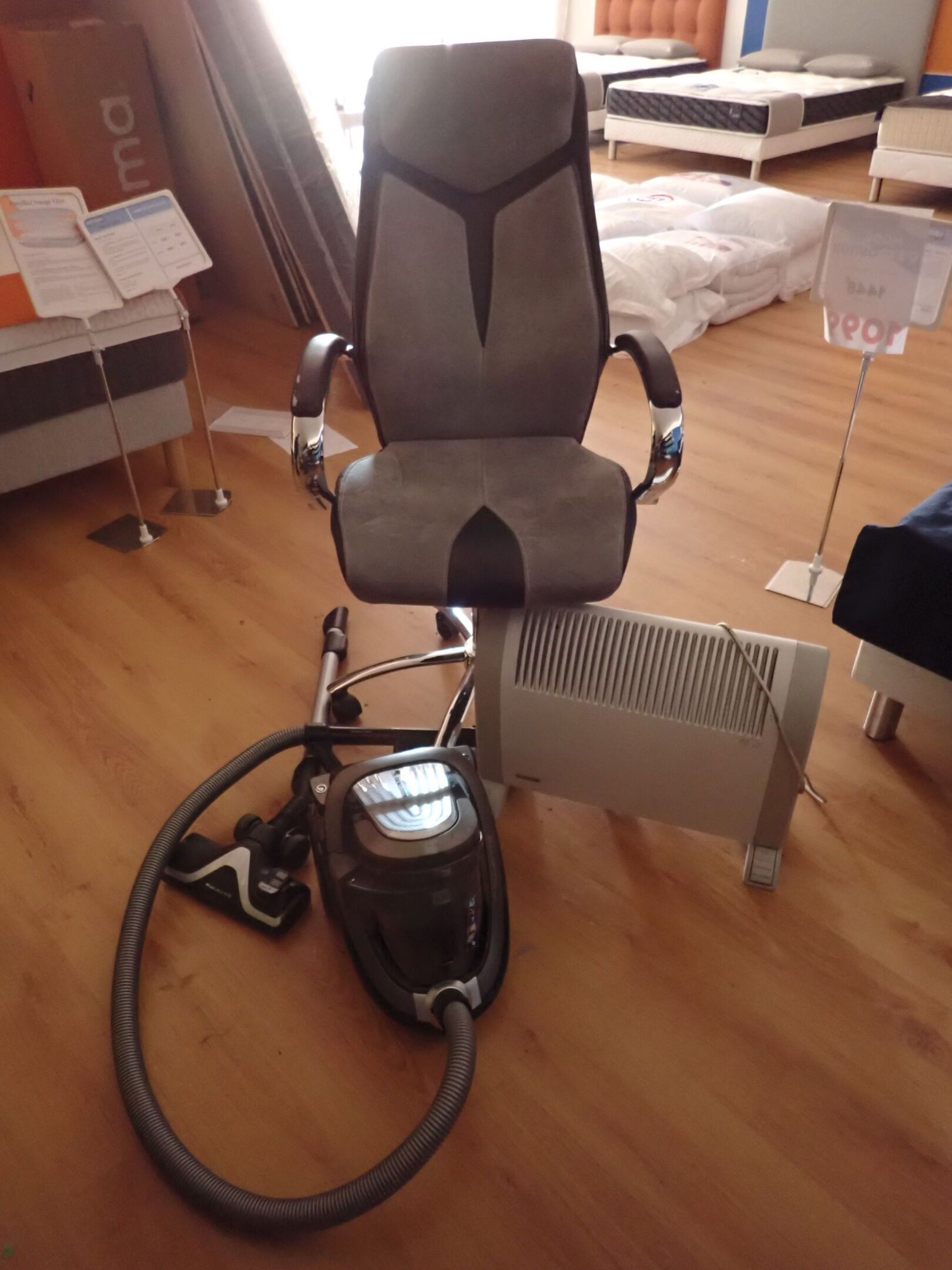 Grey and black mobile executive armchair, electric radiator, 2-door pvc cupboard and ROWENTA hoover, Judicial lot, Bid 20