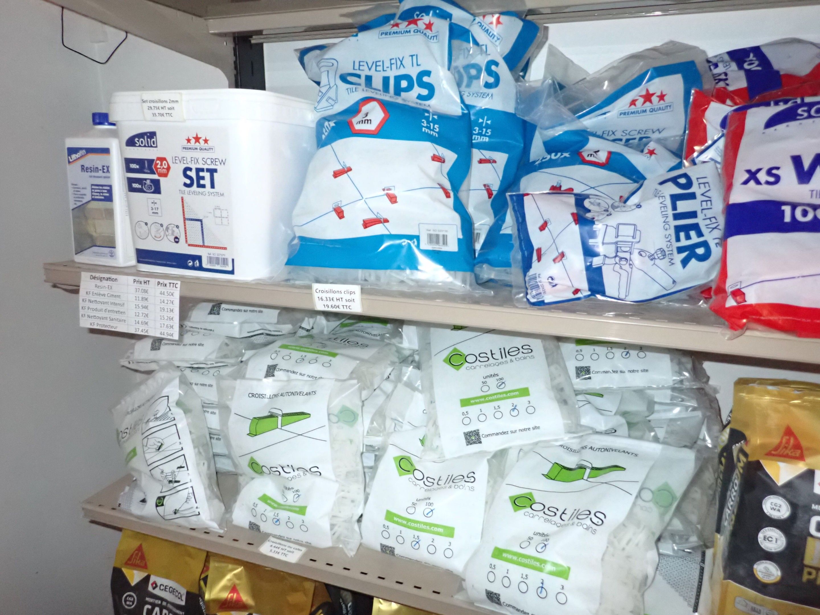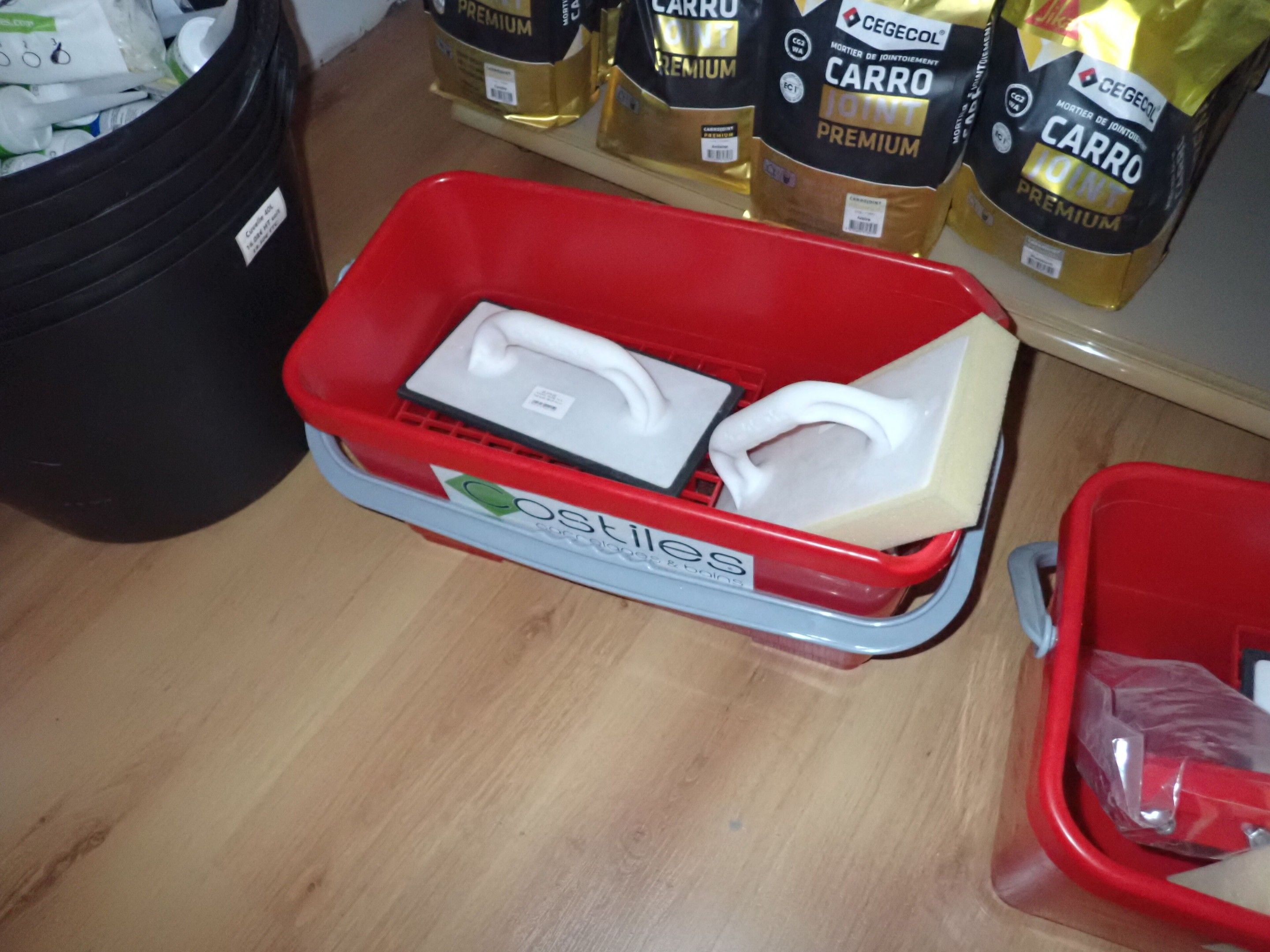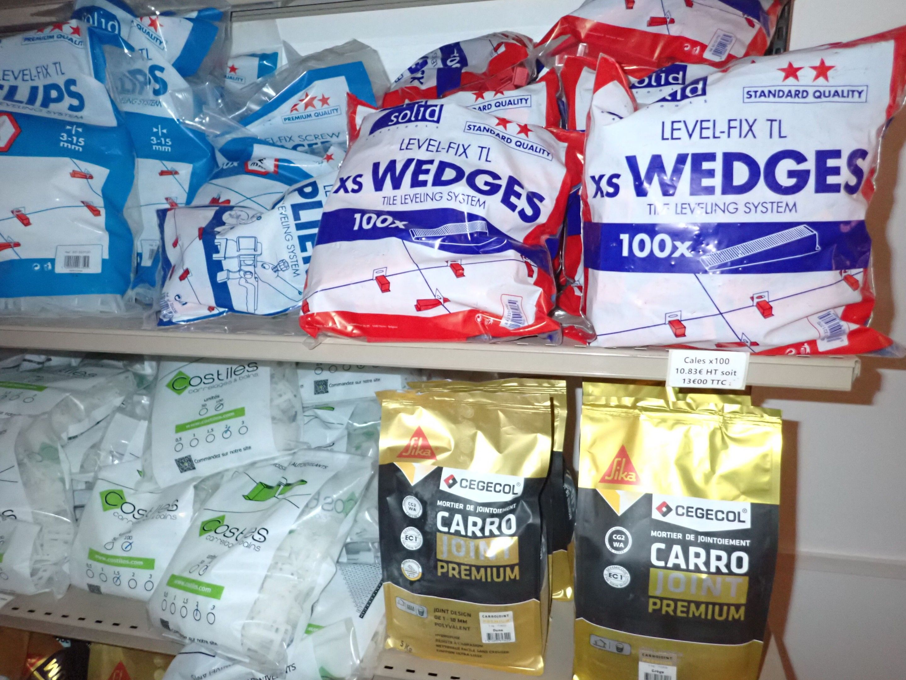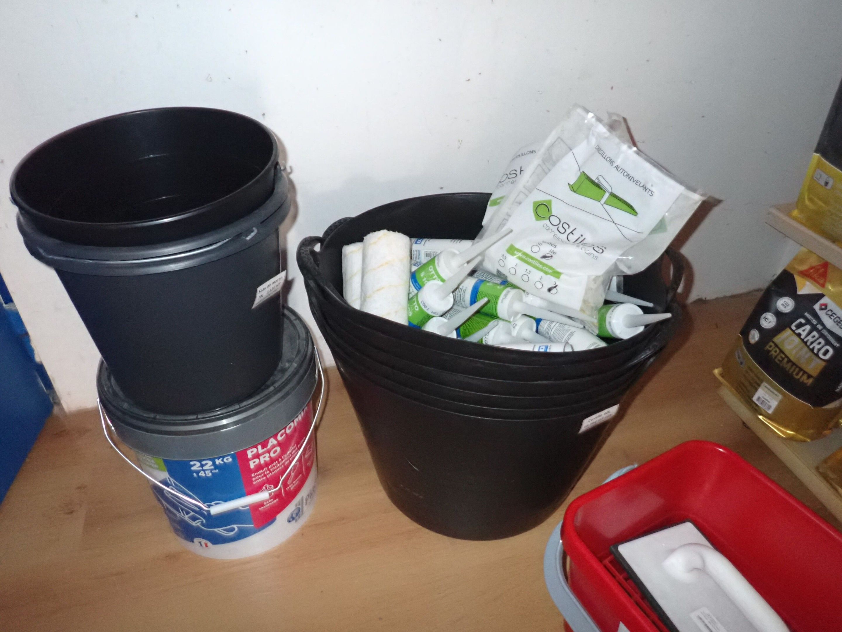 Batch 22 25 kg bags of CARRO flex xshd adhesive mortar, biden, paint, bags of level fix TL, self-levelling cross-bars, bags of Livel Fix TL, self-levelling cross-bars, bags of CEGECOL square joint mortar, HELLCRAU silicone cartridges, various small hand tools, Judicial Batch Price 60