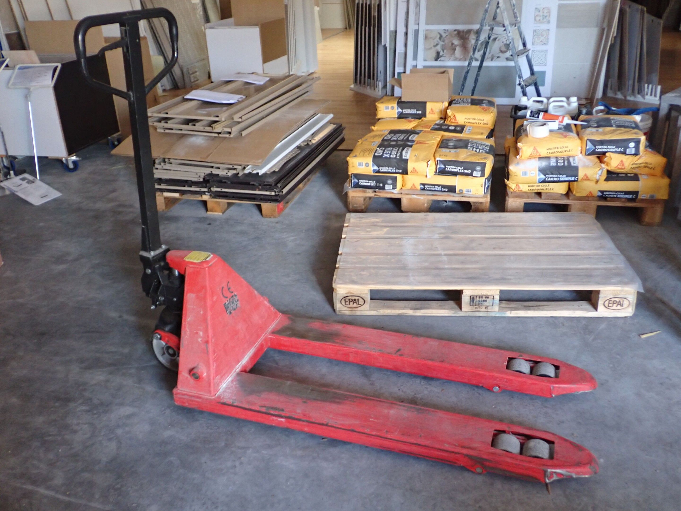 Red pallet truck 2.5T, Judicial lot, Price 80