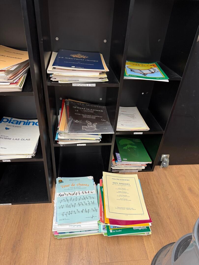 Set of 3 shelves and their contents of scores, methods and t…