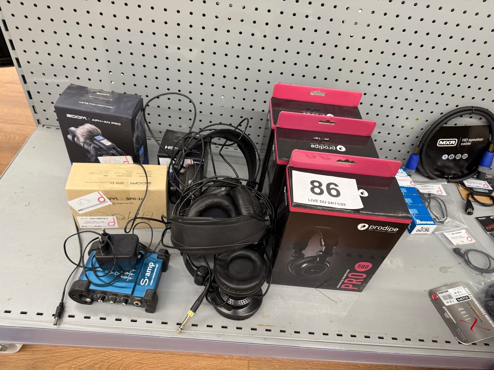 Pack of 6 headphones including PRODIPE, 3 ZOOM accessory packs and SAMSON headphone amplifier