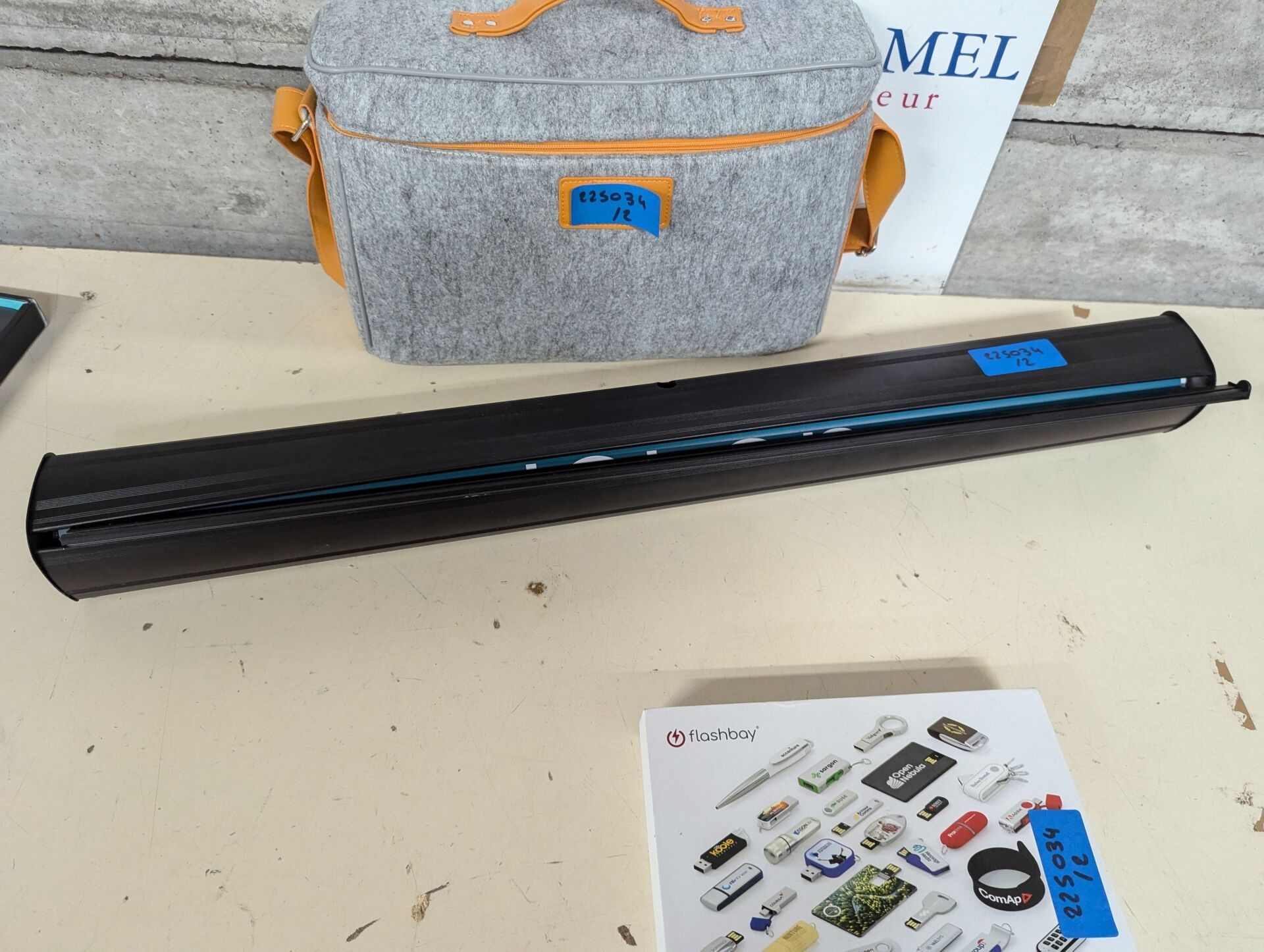 Lot including : - Advertising roll-up - Grey fabric bag - Ca…
