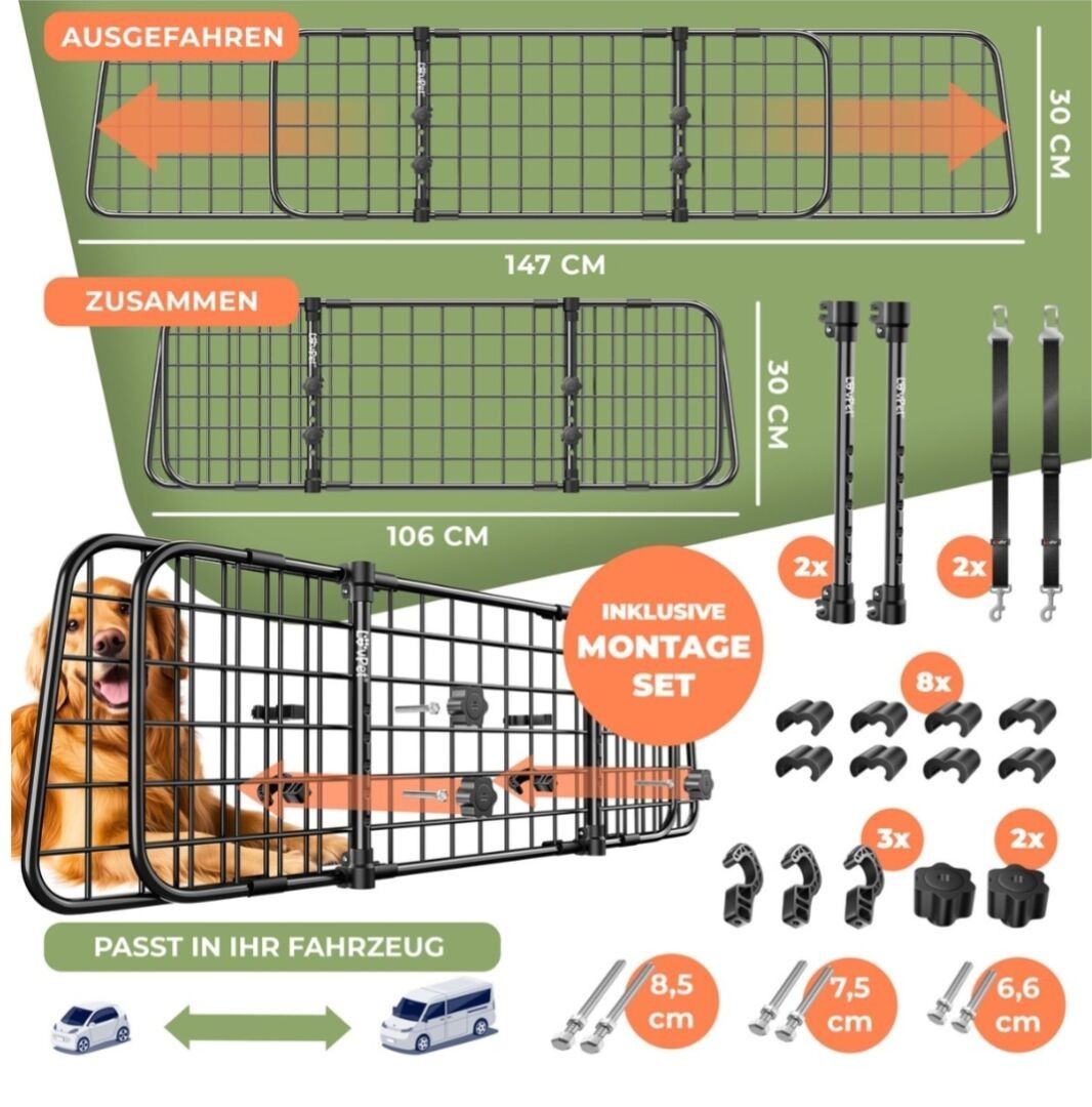 1 DOG BIKE TRAILER, 1 ANIMAL CAR GUARD, 1 ANIMAL CARRIER 60X42X42, 1 ANIMAL CARRIER 70X52X52