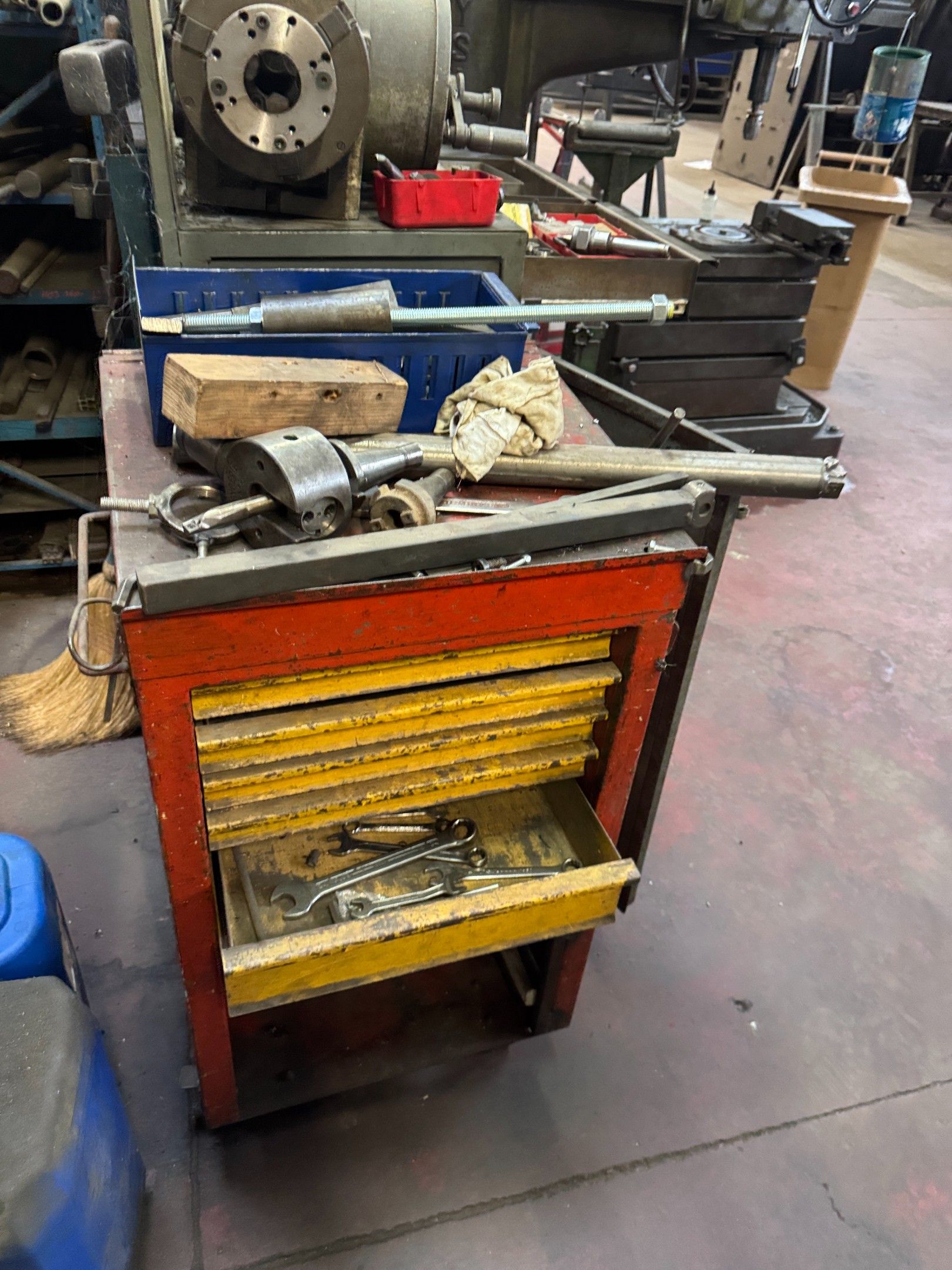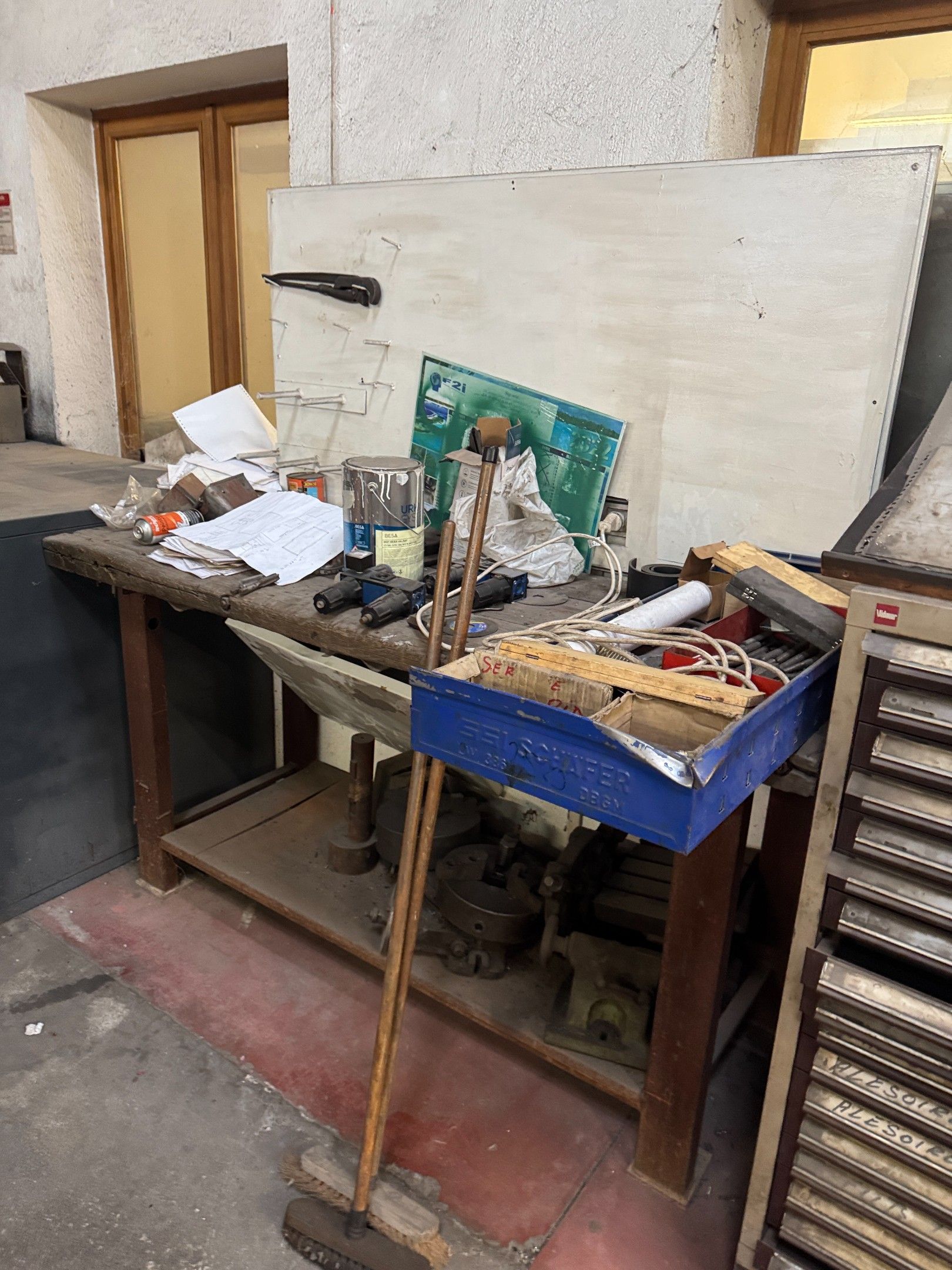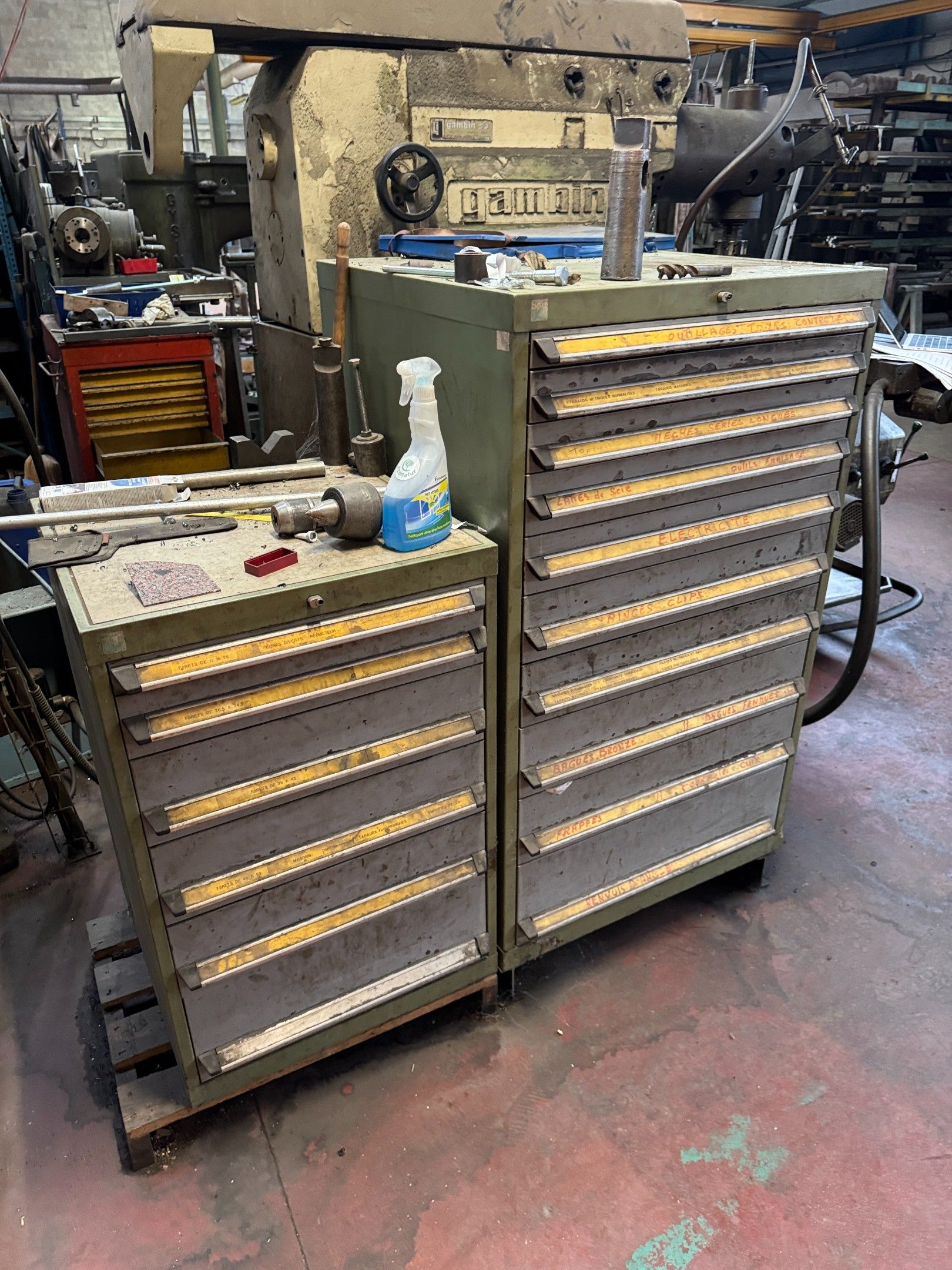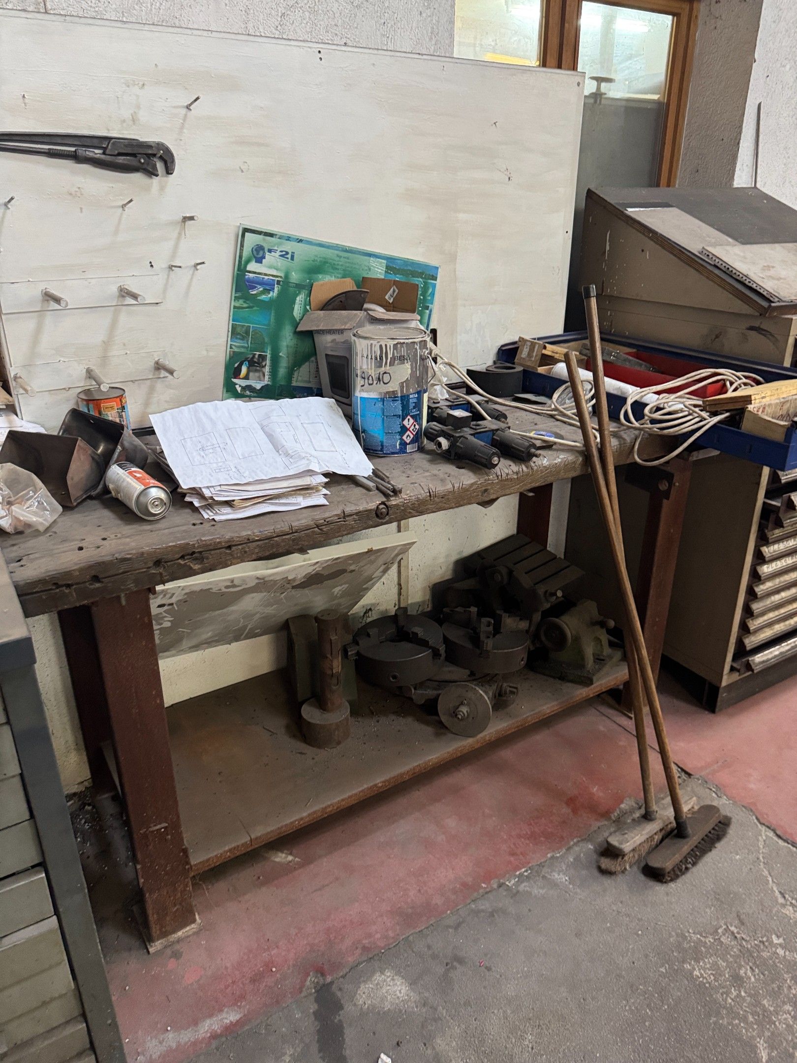 3 workbenches, 4 storage cupboards, 6 vices, 4 pieces of tra…