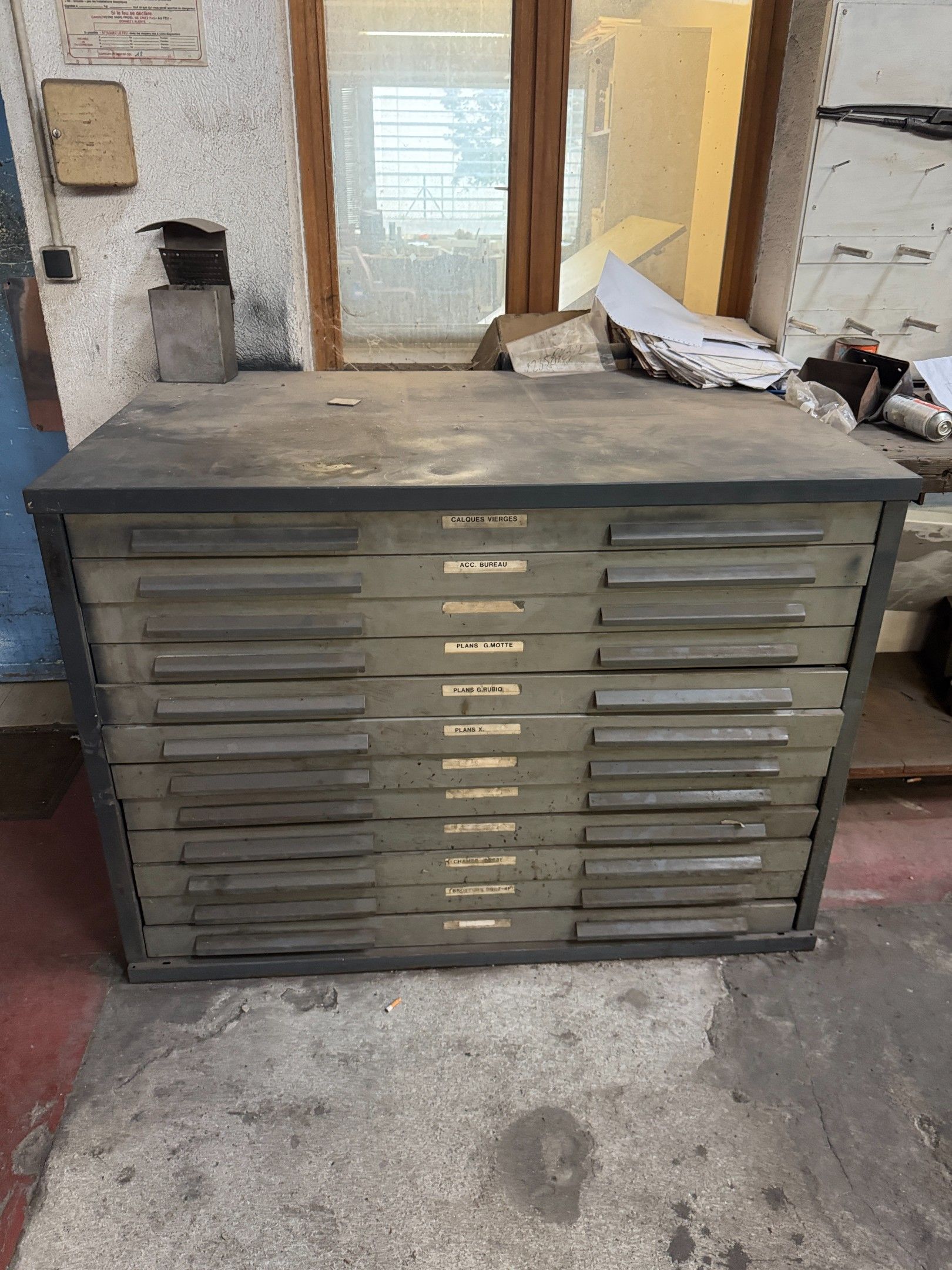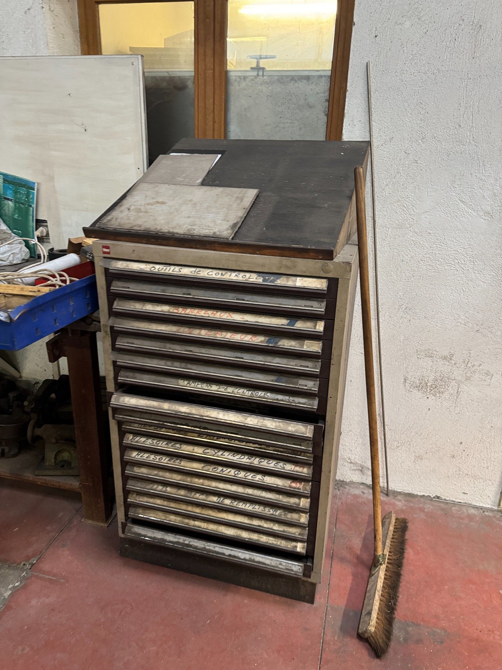 3 workbenches, 4 storage cupboards, 6 vices, 4 pieces of trade furniture, a workbench, 5 trolleys, a batch of shelving, 2 workbenches, 4 cupboards, 3 tables, a batch of shelving, a workbench and all the furniture present in the hangar with the exception of the cantilevers racks and the lot designated above, sold without the contents and the equipment present above - VAT recoverable - Collection only on 24 and 25 November from 9am to midday and from 2pm to 5pm, after this time the lots will be deemed abandoned. A longer period may be granted for lot 60 - No handling facilities on site PROVISIONAL AUCTION, SOLD WITH REUNION FACILITY
