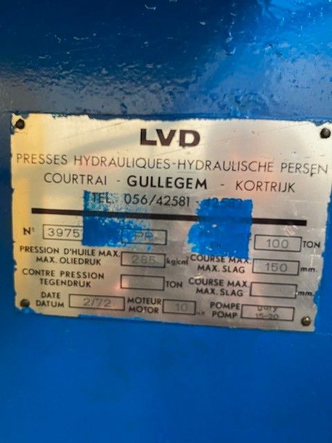 1 LVD PP folding machine, 100 tonnes