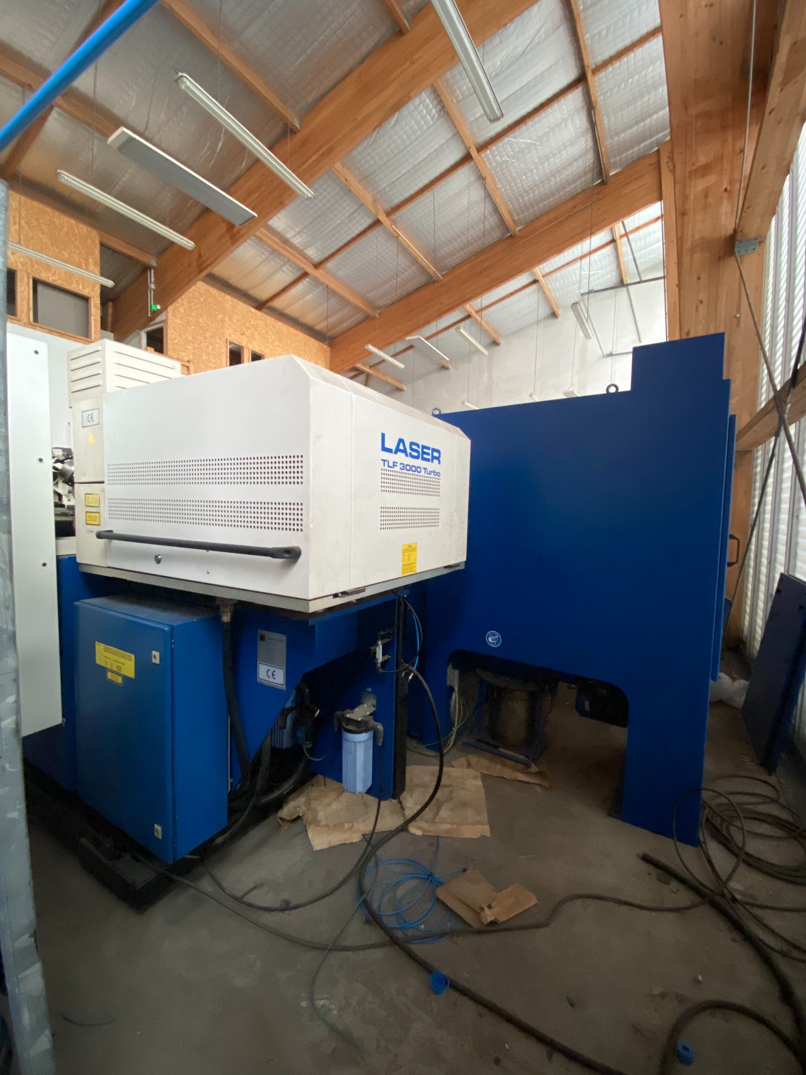 One TRUMPF Trumatic L2530 laser cutter, type TC L2530, n° 910655, from 04/2001 - Laser capacity: 3000W - RIEDEL cooling cabinet type L1521 TR3/19.00 - KELLER suction cabinet type Vario T15 - Double loading table 2500x1250mm - With two cutting heads (5" and 7.5")