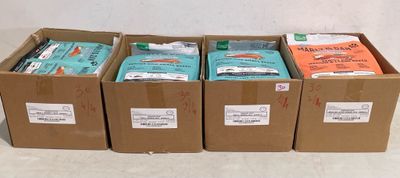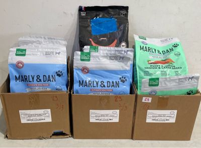 Pack of four cartons of different MARLY & DAN adult dog food…