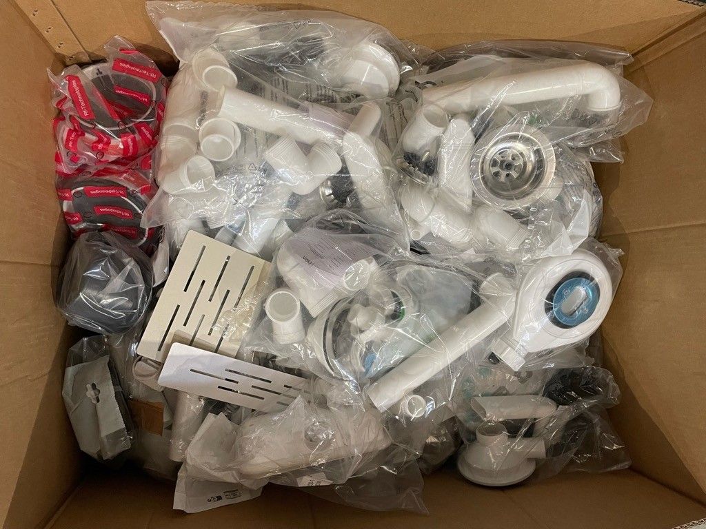 Batch of plumbing/faucet accessories (bungs, nozzles, fittings, etc.), as is.