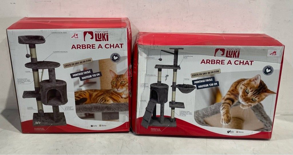 Set of two cat trees "mon ami LUKI" , 112cm and 138cm , as is (boxes in average condition, insides not checked) .