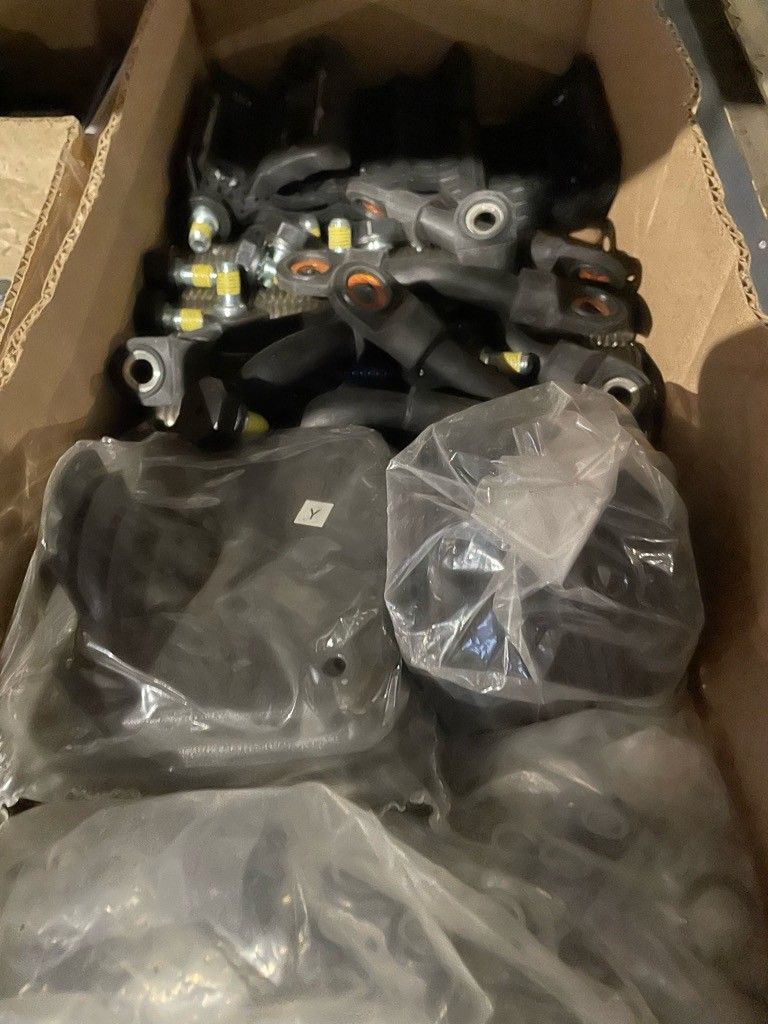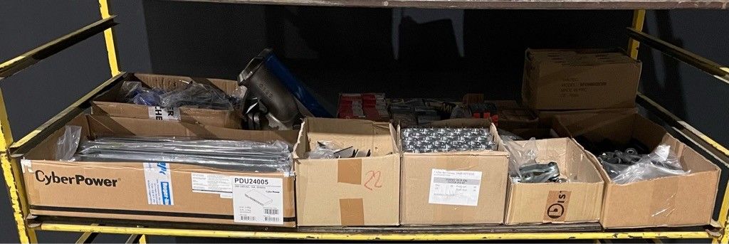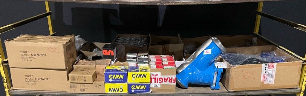 On the entire intermediate floor of the carriage: filters, calipers, hubs, safety seals, screws, hardware and miscellaneous, as is.