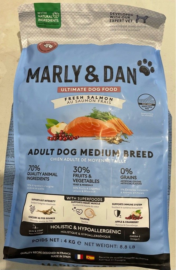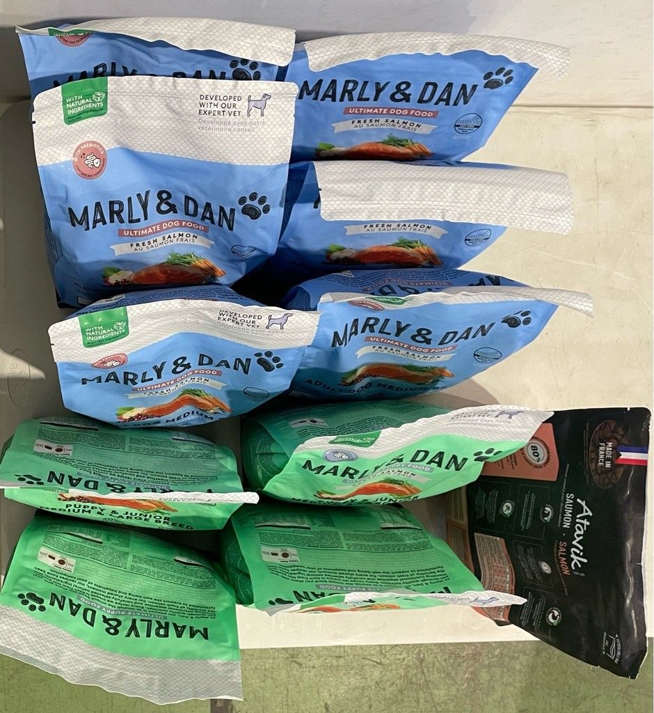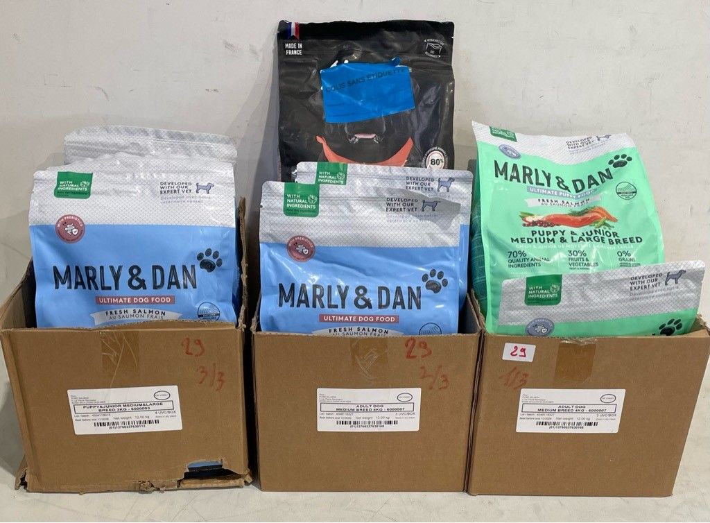 Lot of three boxes of different dog food "MARLY & DAN". DLUO OK, as is.