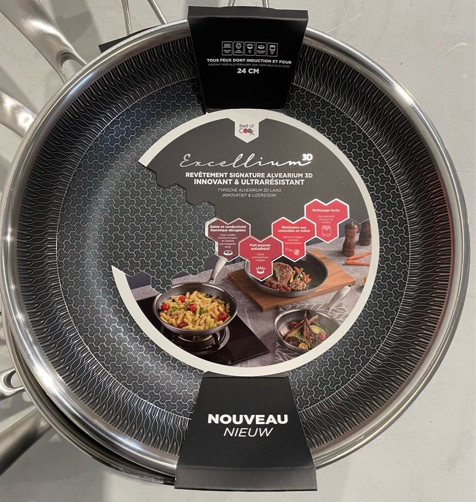 Box of eight "Best of COOK Excellium 3D" pans 24cm diameter, as is.
