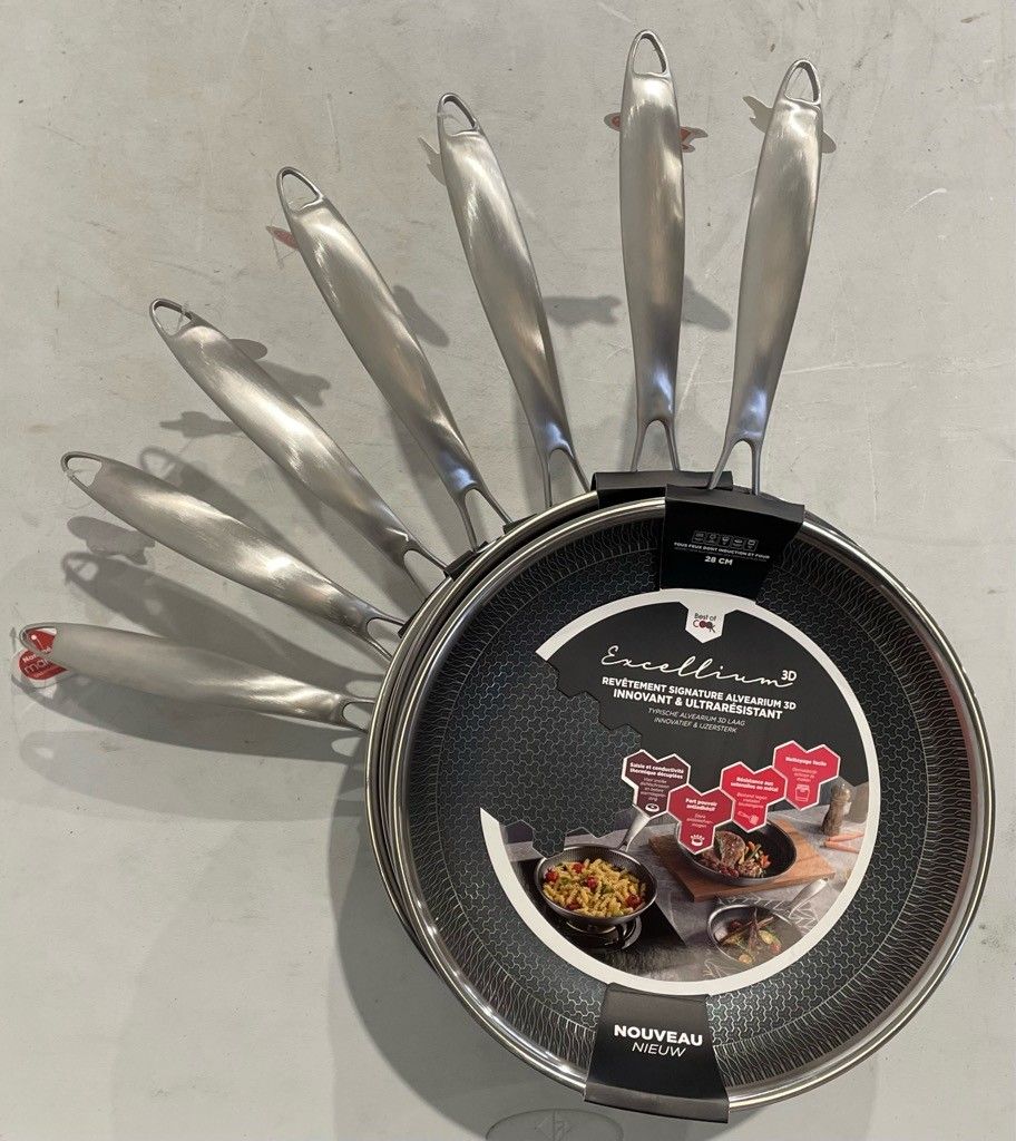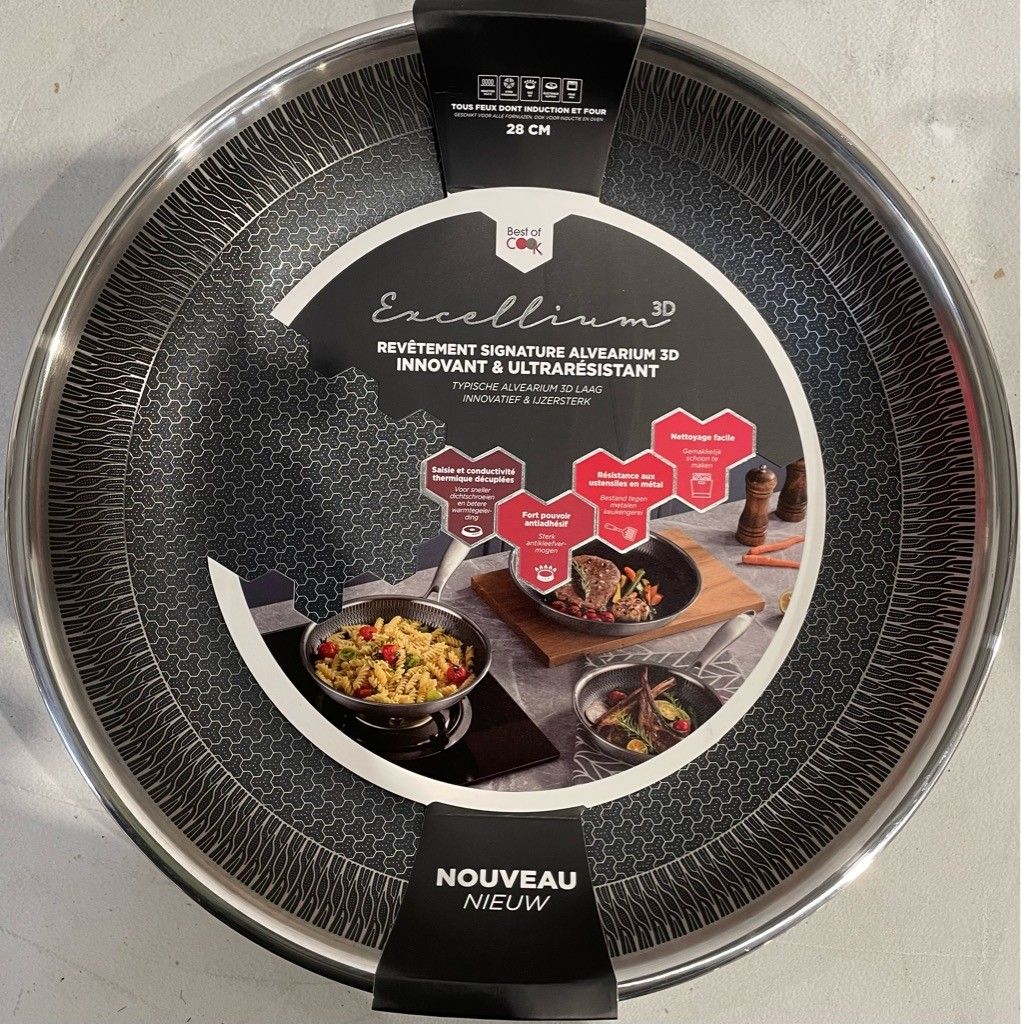 Boxes of seven "Best of COOK Excellium 3D" pans 28cm diameter, as is.