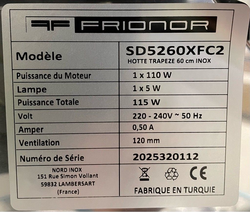 FRIONOR" extractor hood , 45cm high X 60cm long X 20,5cm wid…