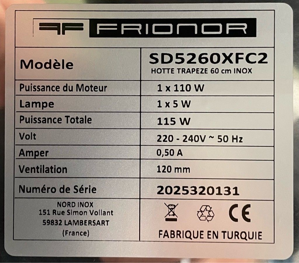 FRIONOR" extractor hood , 45cm high X 60cm long X 20,5cm wid…