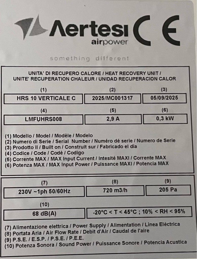 Aertesi airpower" heat recovery unit, approx. 152.5cm X 90cm X 39cm, untested, as is.