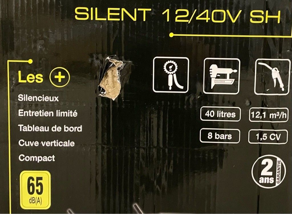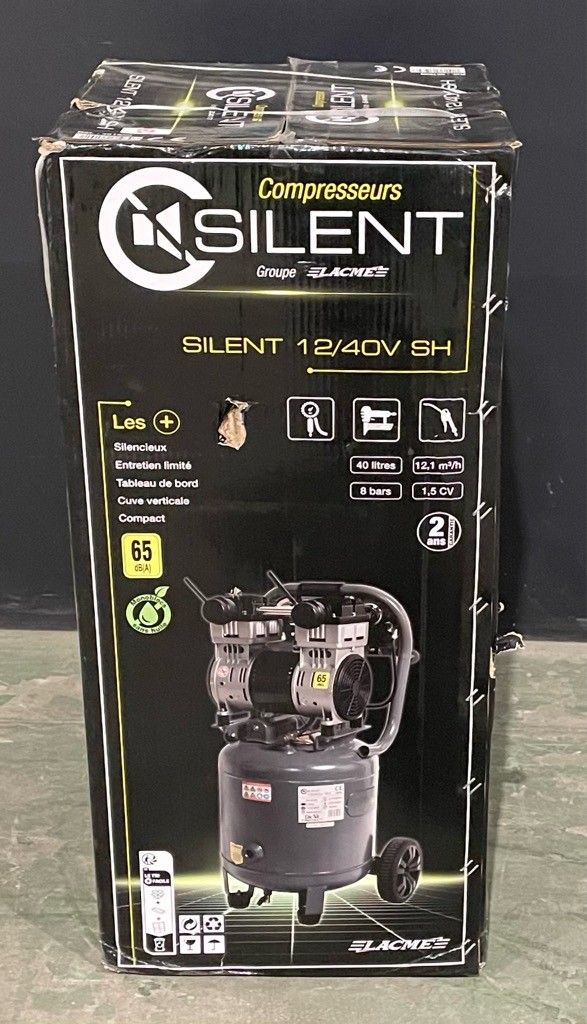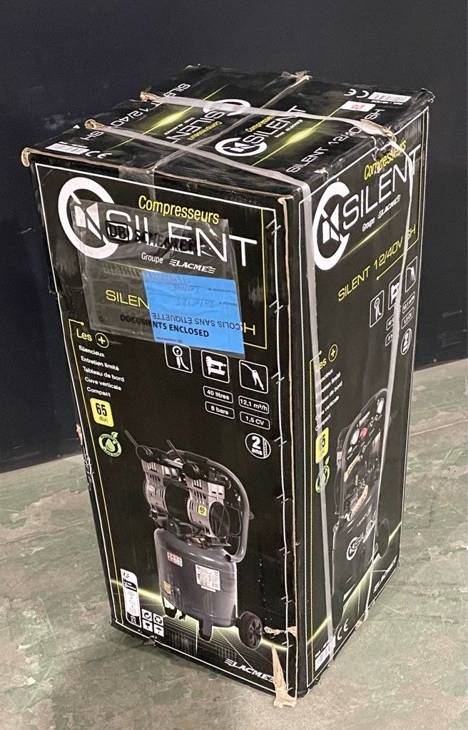LACME SILENT" compressor 40 litre, untested, in cardboard box (interior not checked), as is.