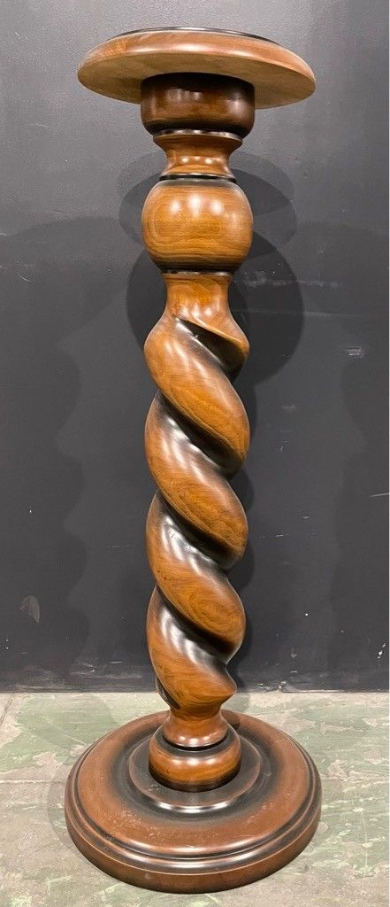 Set of two mismatched wooden columns, 30cm and 92cm high approximately, in mint condition. (no recoverable VAT)