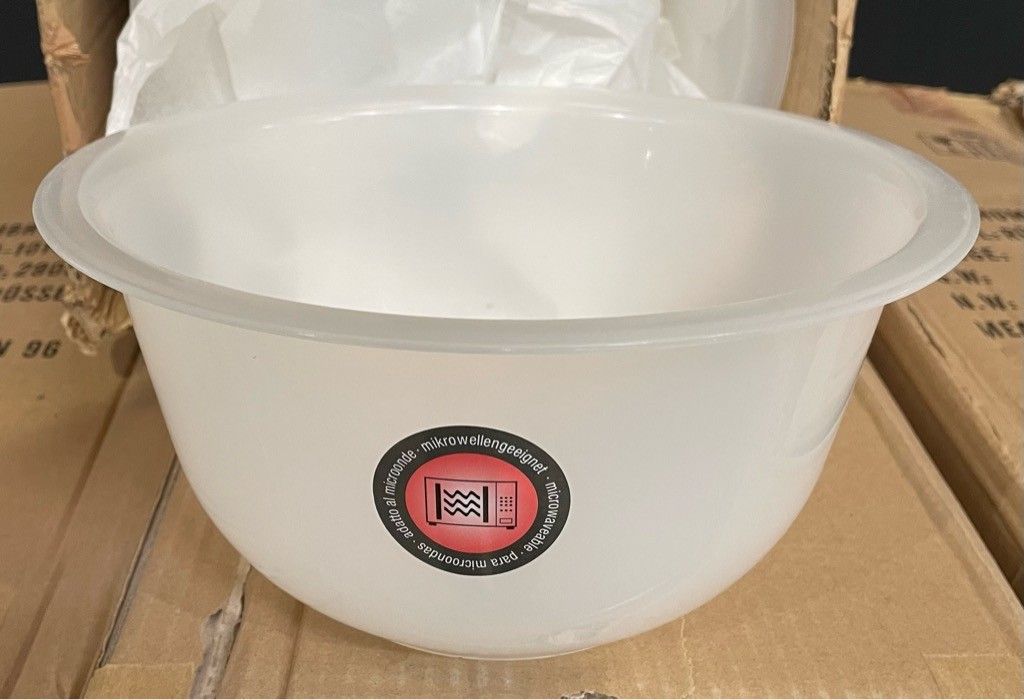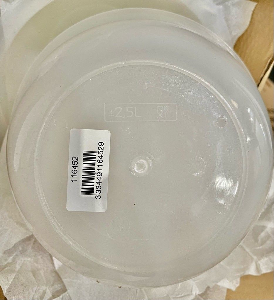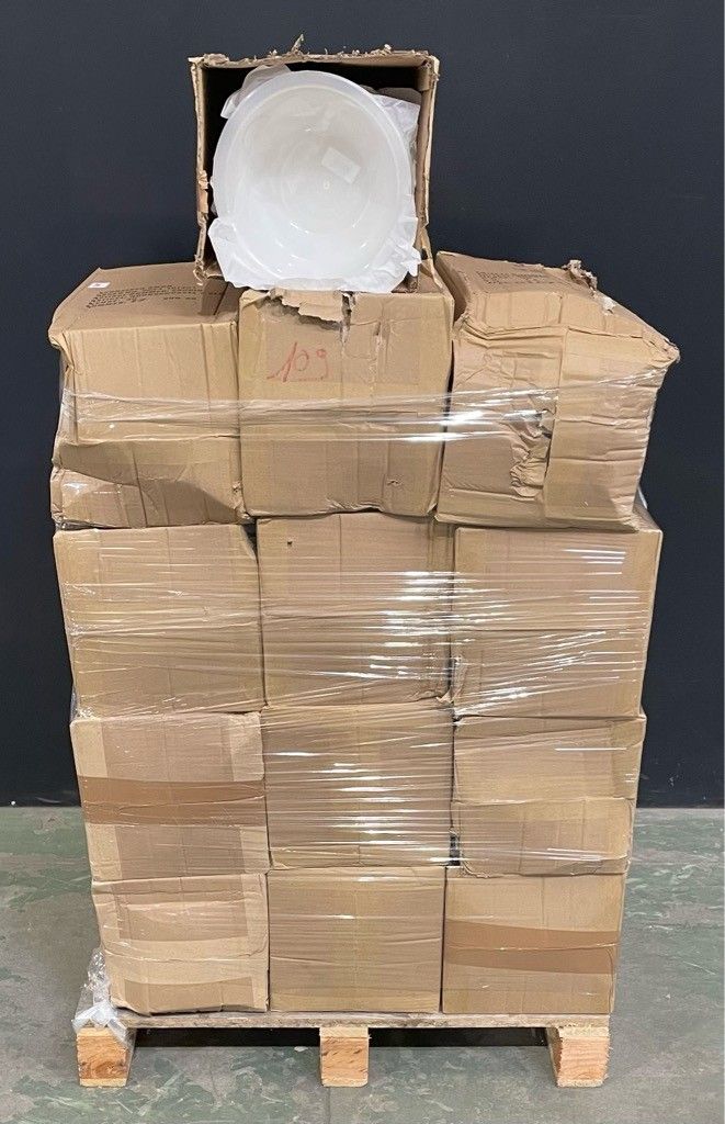 Half-pallet of plastic bells for microwave ovens, 2.5 litre size, 36 units per box, as is.