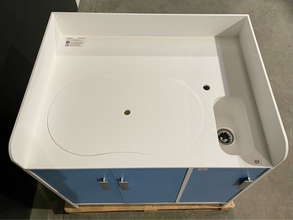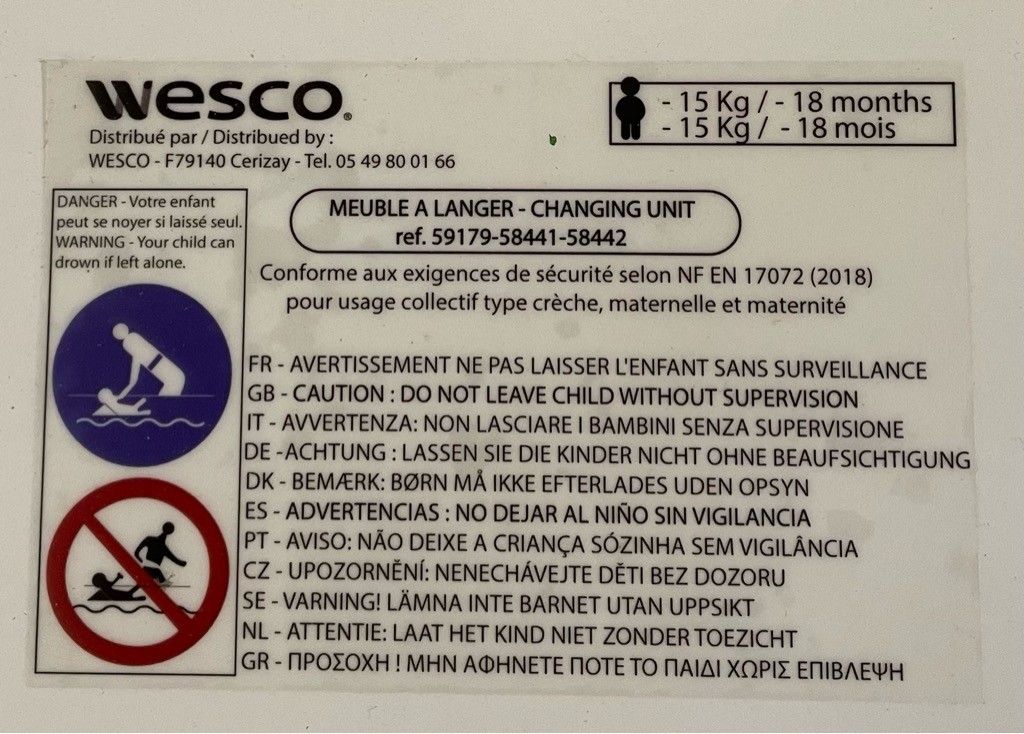 Wesco" changing unit, 105cm high X 103.5cm wide X 77cm deep approximately, as is (one broken element on the back of the unit in particular).
