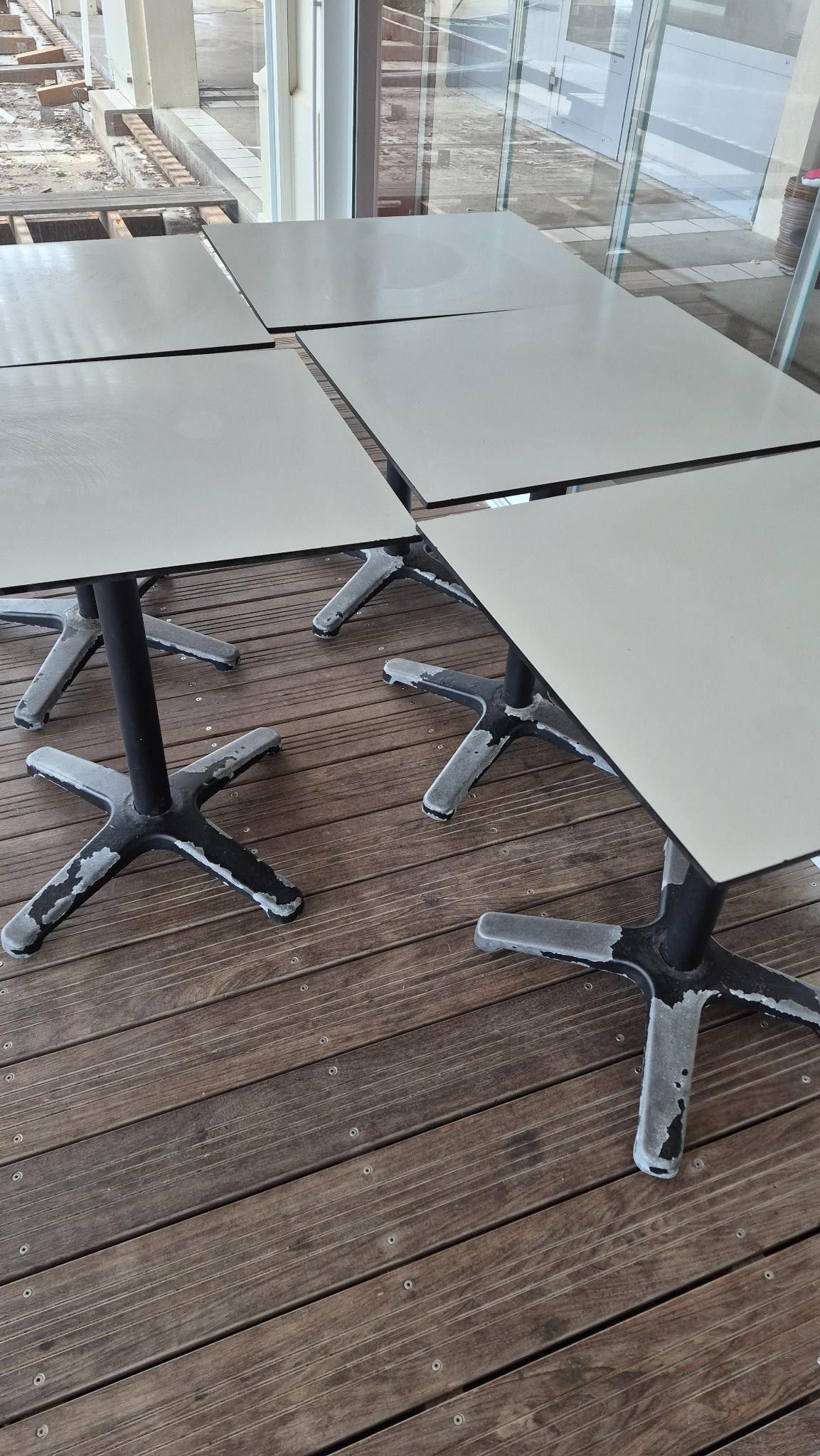 by appointment, to be collected from Talmont Saint Hilaire (85440) no later than 26/11/25: 17 indoor 60x70cm tables and 8 outdoor 60x70c white tables. Sold as is.
