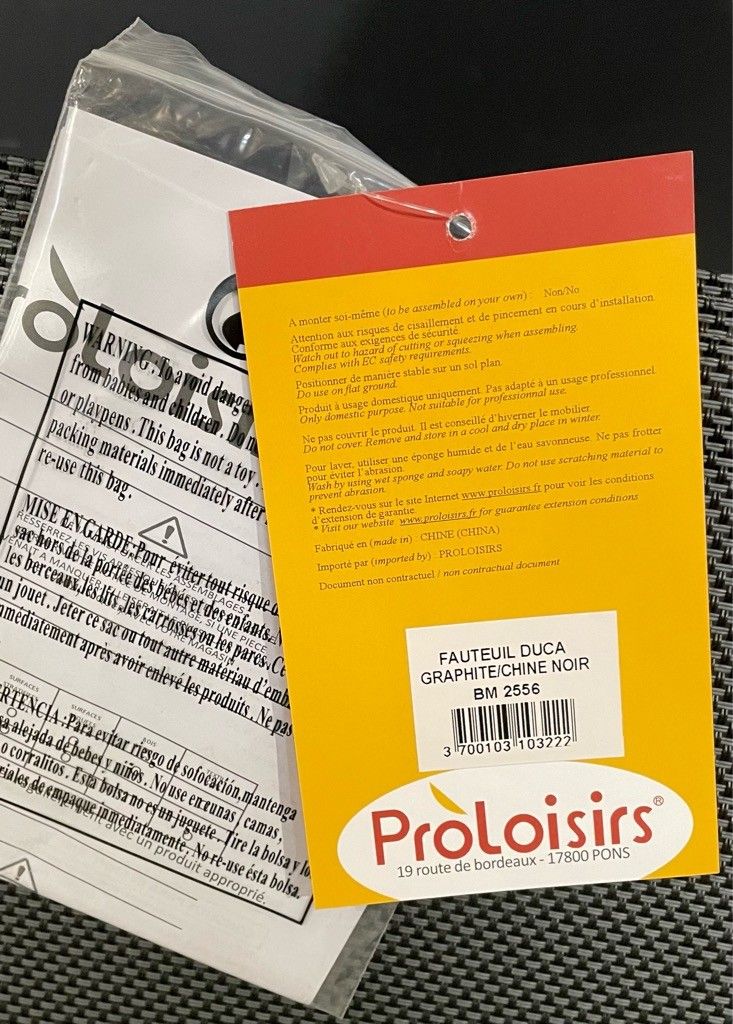 Set of four "ProLoisirs / DUCA" stacking garden chairs. as is.