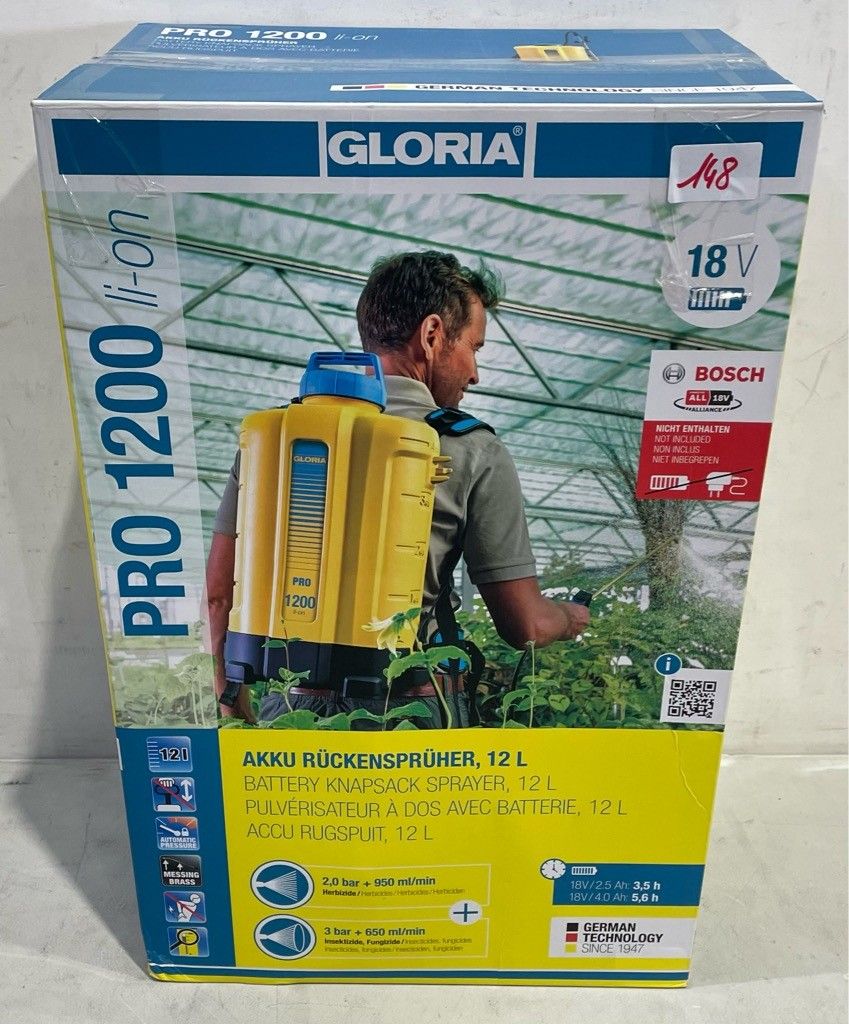 GLORIA PRO 1200" backpack sprayer with battery not tested, as is.