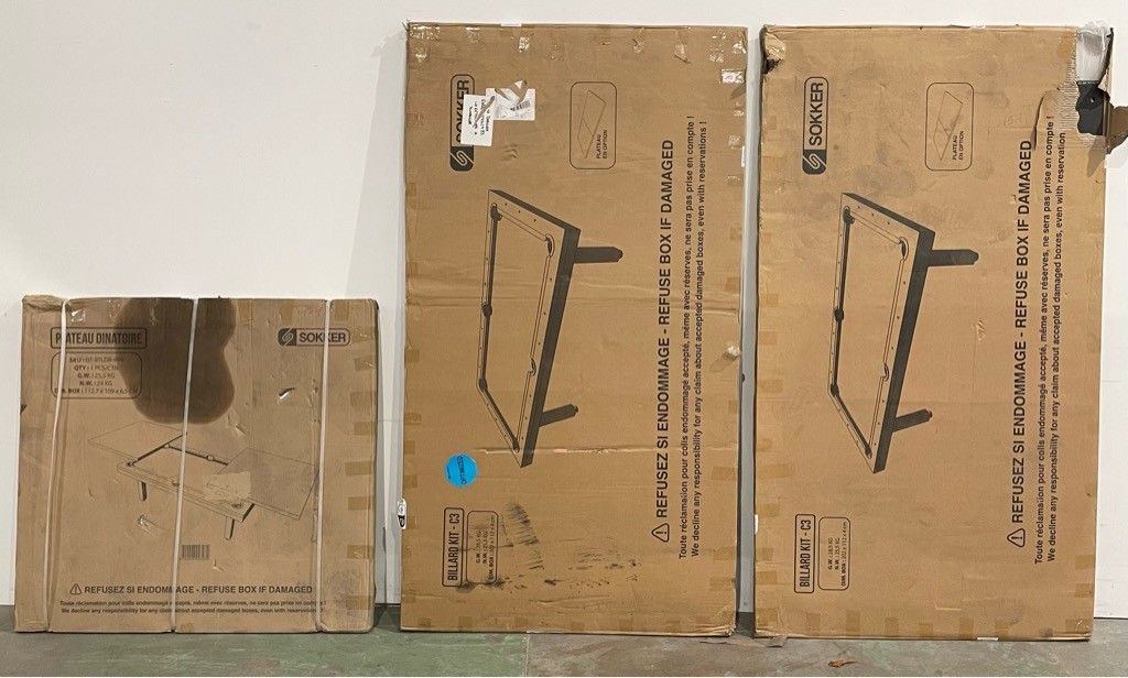 Set of three "SOKKER" billiard table tops in kit form. as is.