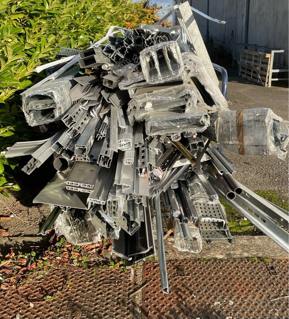 Set of metal lengths and miscellaneous, as is (trolley not i…
