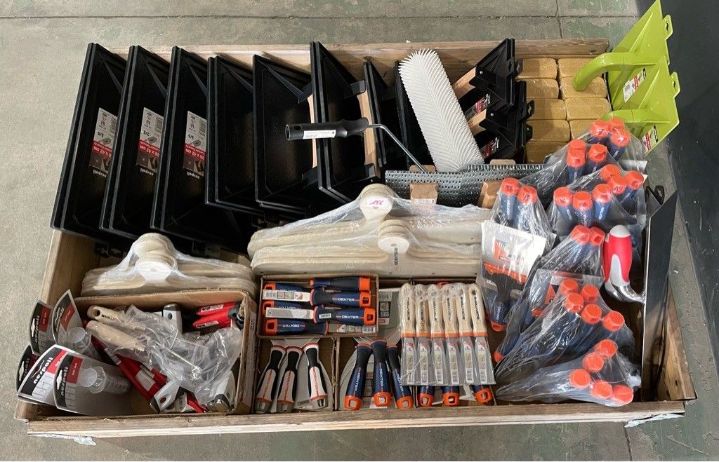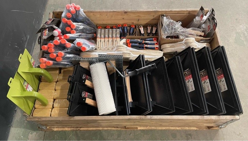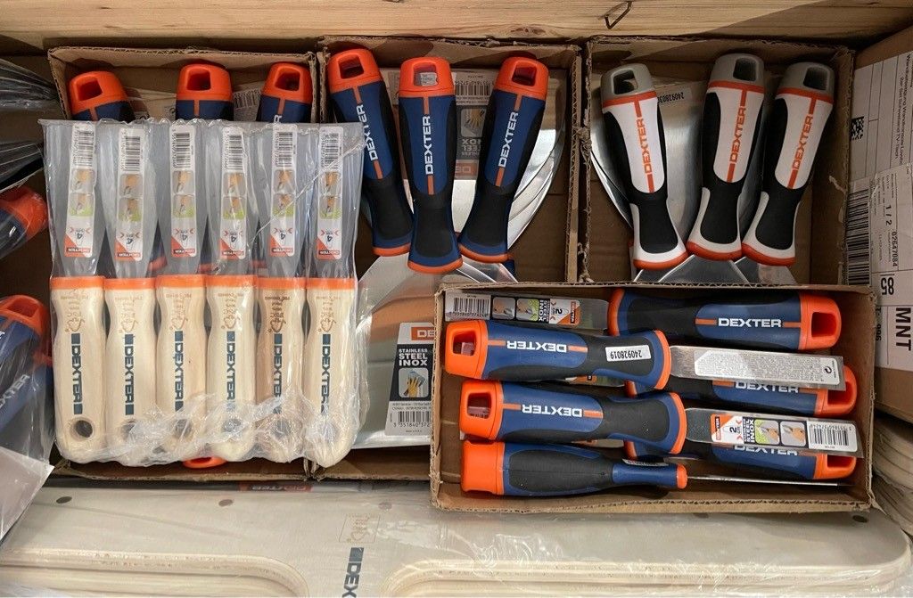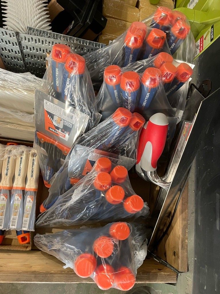 Batch of various "nespoli" and "DEXTER" tools (coating knives, floats, scrapers, roller, sponges, ...), in the state. (box pallet not included)