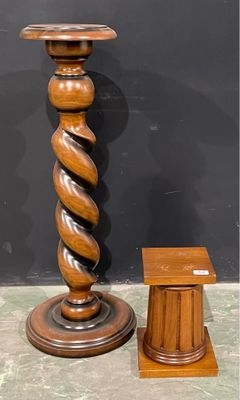 Set of two mismatched wooden columns, 30cm and 92cm high app…