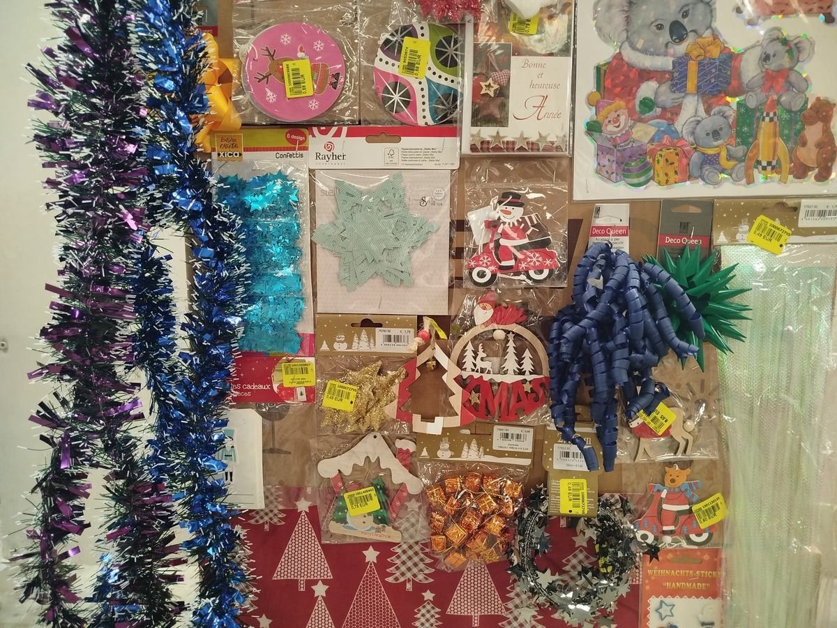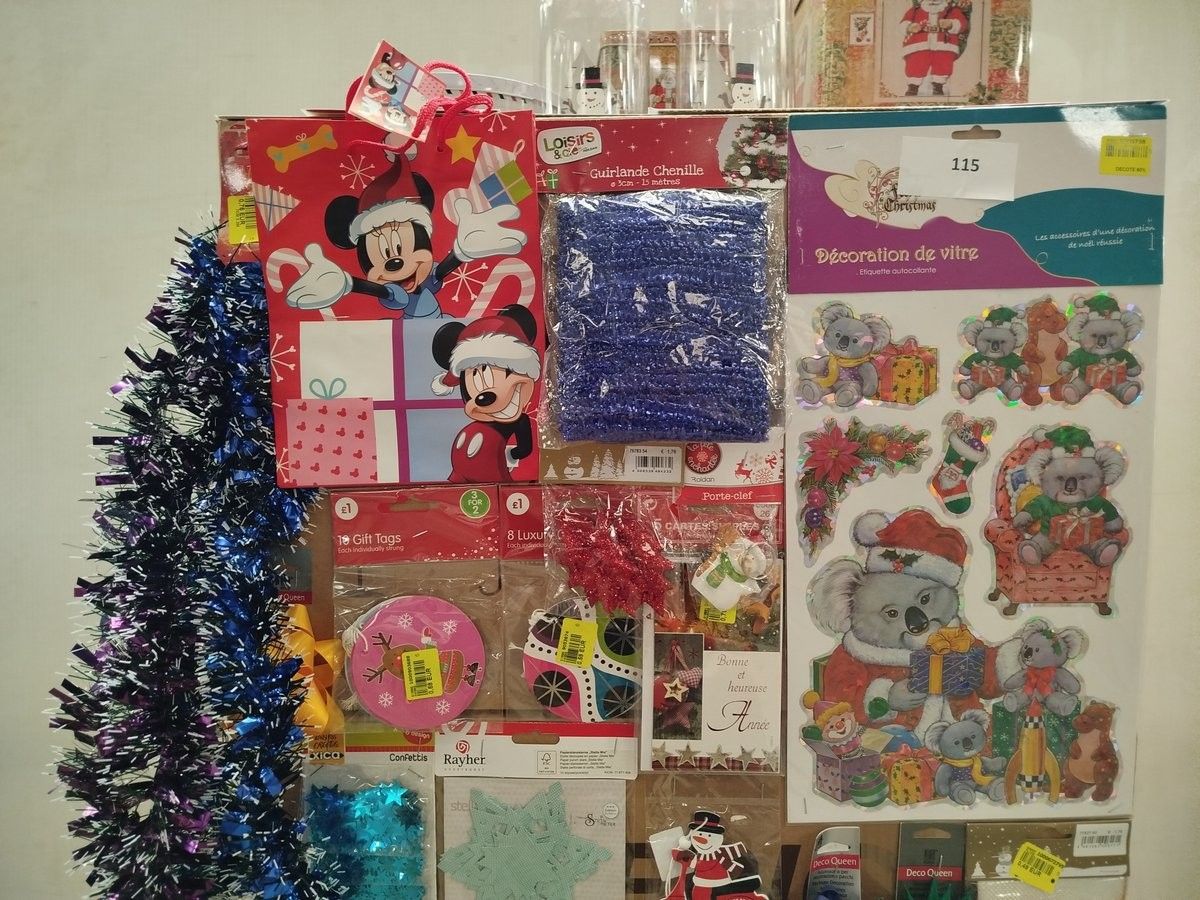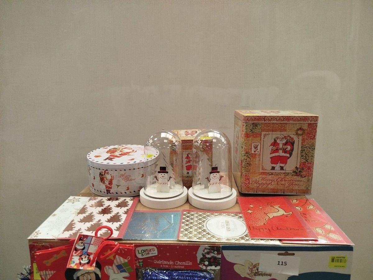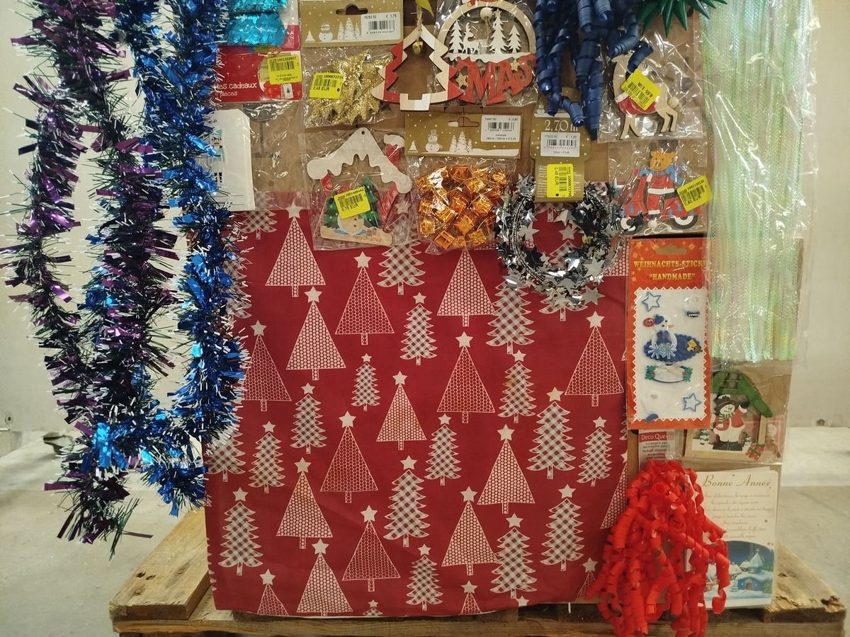 Pack of 3 boxes of Christmas decorations including: wooden objects, cards, stickers, napkins, decorations, etc.