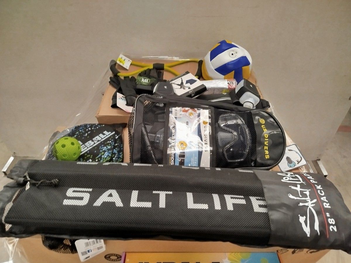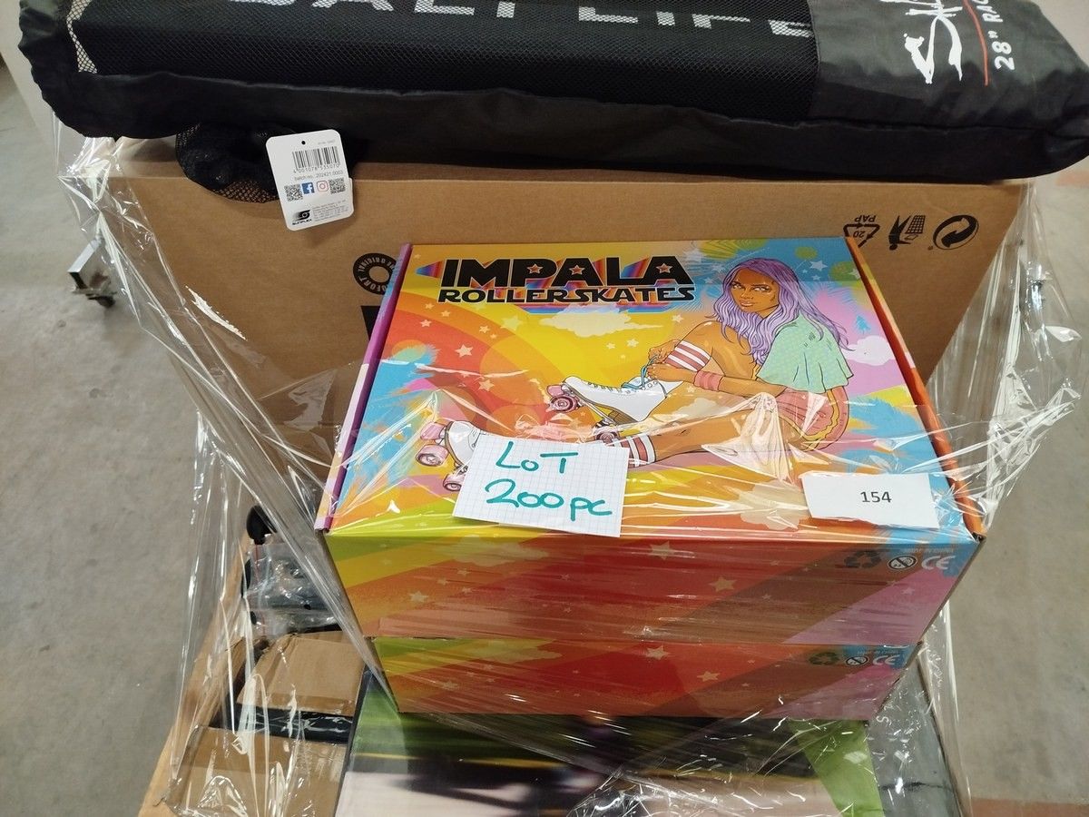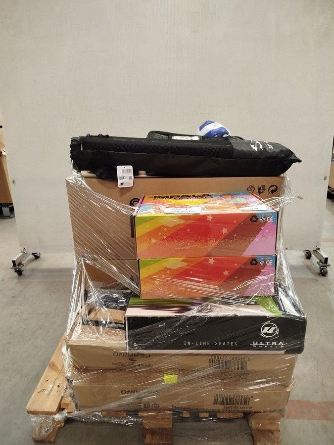 Batch of 200 sports items: rollerblades, balls, masks, etc...