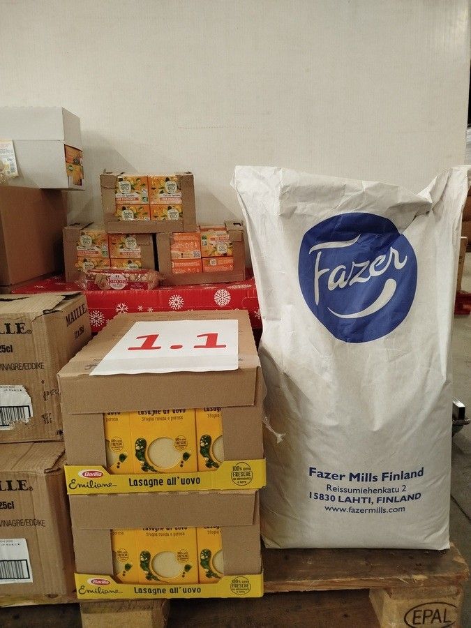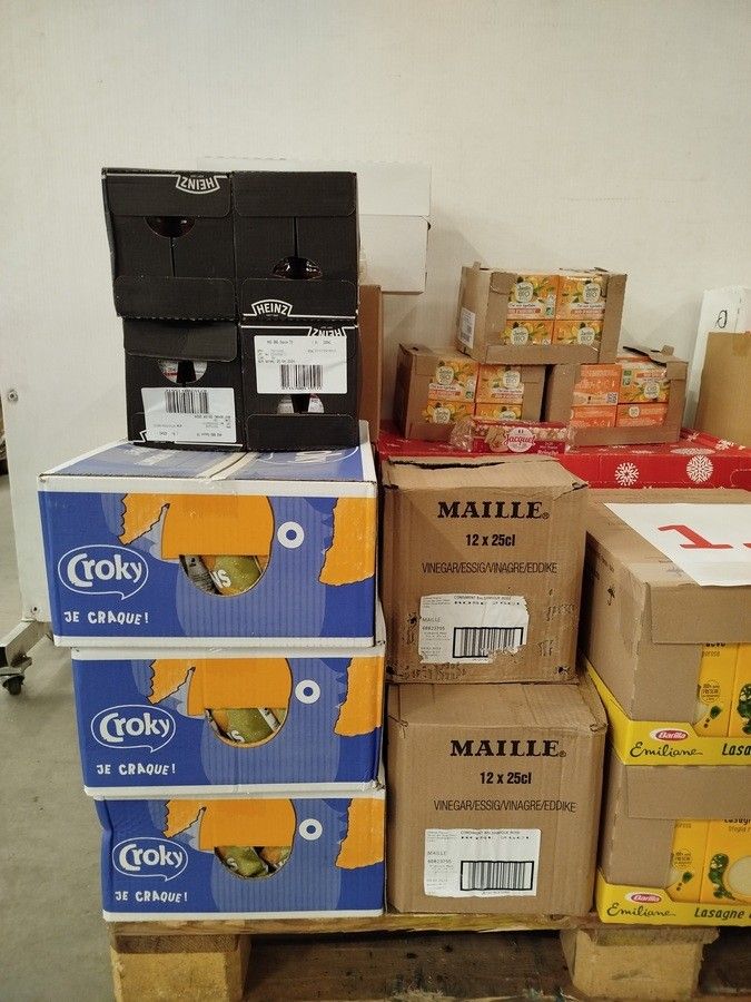 Batch of over 400 food items including lasagne / sauce / rolls / flour / vinegar / tea / croutons / crisps DMM 2025-2026 - Value of the batch over 650€.