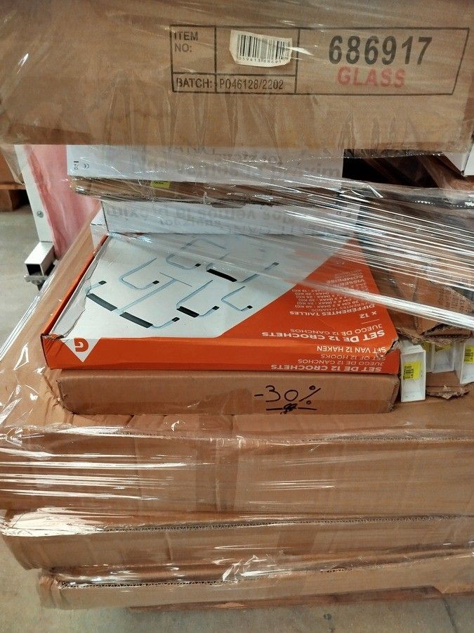 Lot of about 40 miscellaneous items including: wall clocks, sets of hooks, 1 glass tray etc..