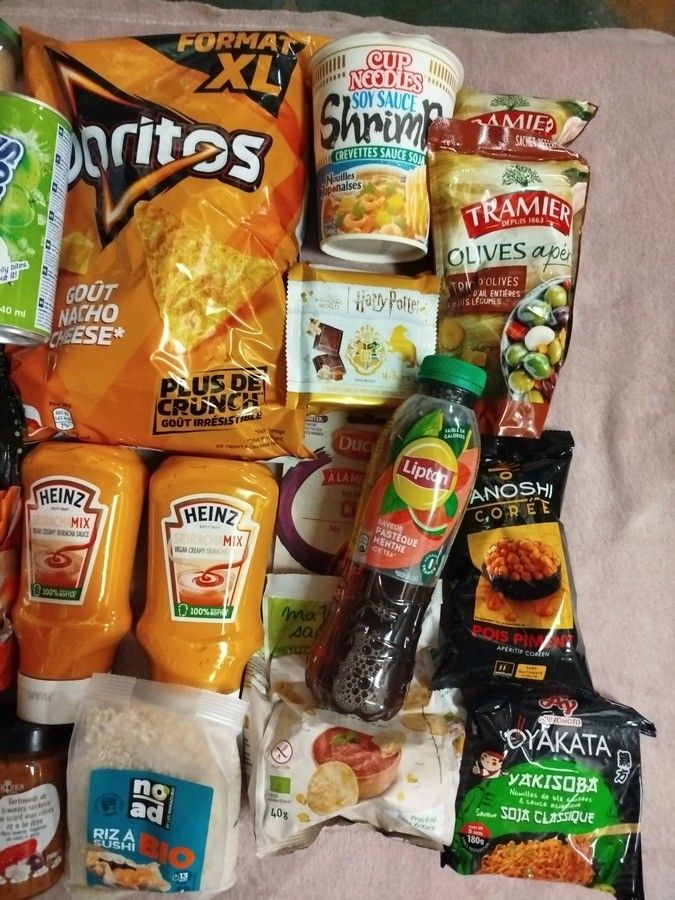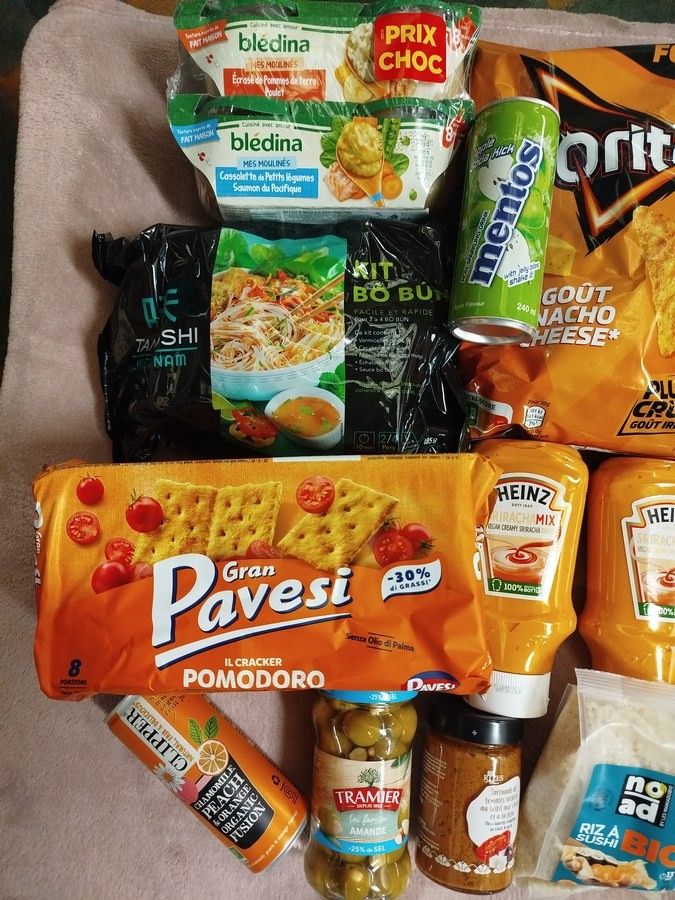 imdem photo 12 Pack of 40 anti-waste food parcels including: crisps, BO BUN kits, Chinese noodles, spices, sauces, rice, biscuits, etc...