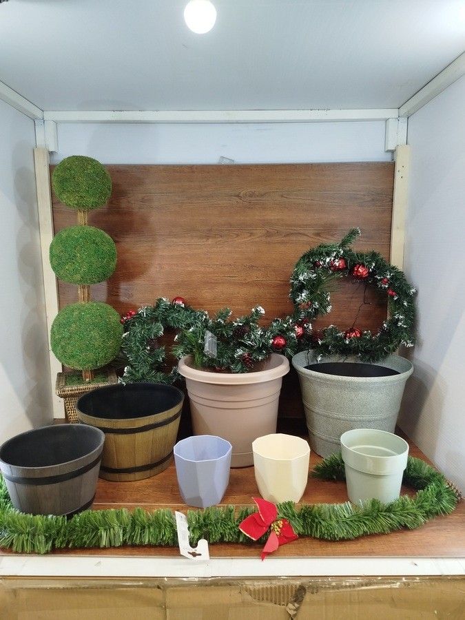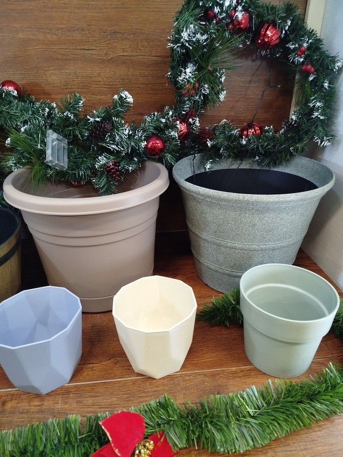 lot of 201 miscellaneous items, mainly flower pots (177 pieces) (various models and sizes), 2 artificial bushes and 22 Christmas garlands
