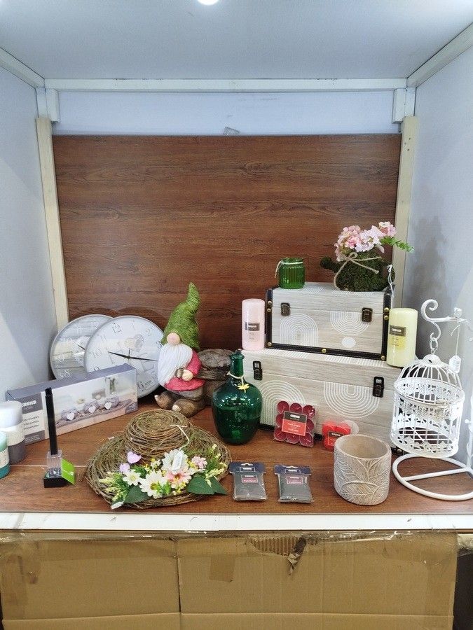 lot of 270 various articles including: frames, lanterns, candles, interior and exterior decoration, garden gnomes, trunks etc...