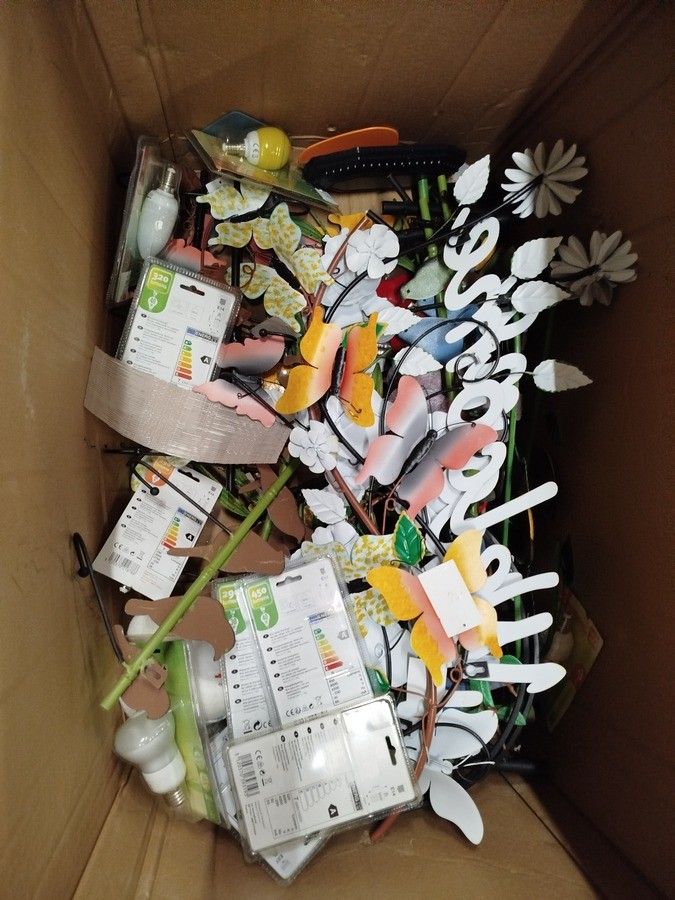 lot of 245 various items including: placemats, frames, mirrors, light bulbs, outdoor decoration etc..