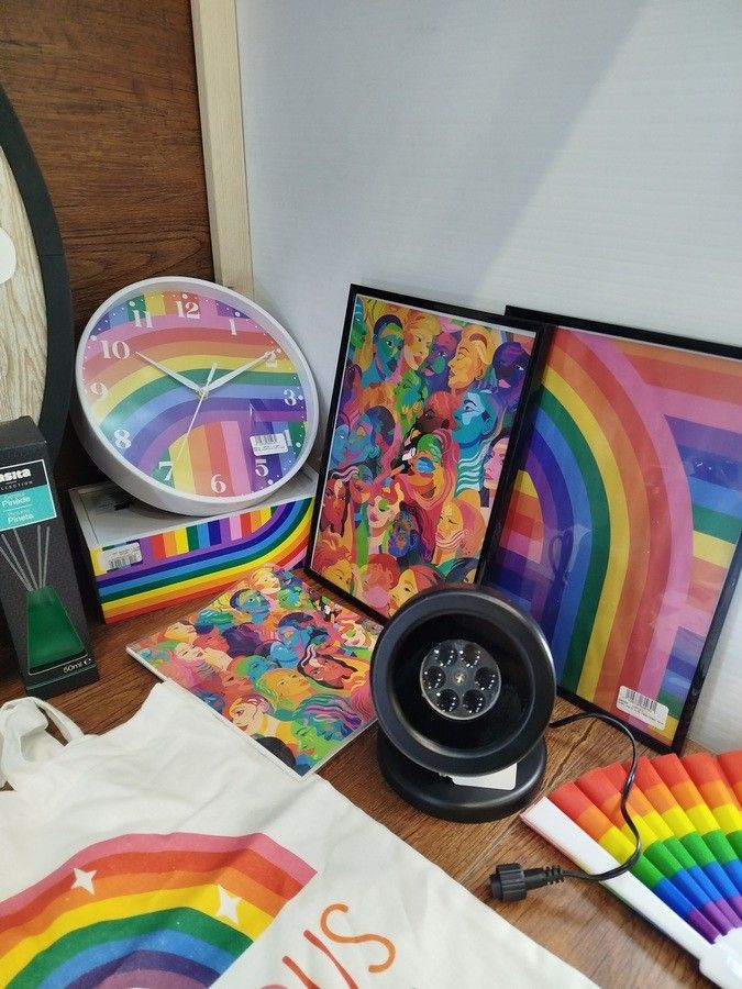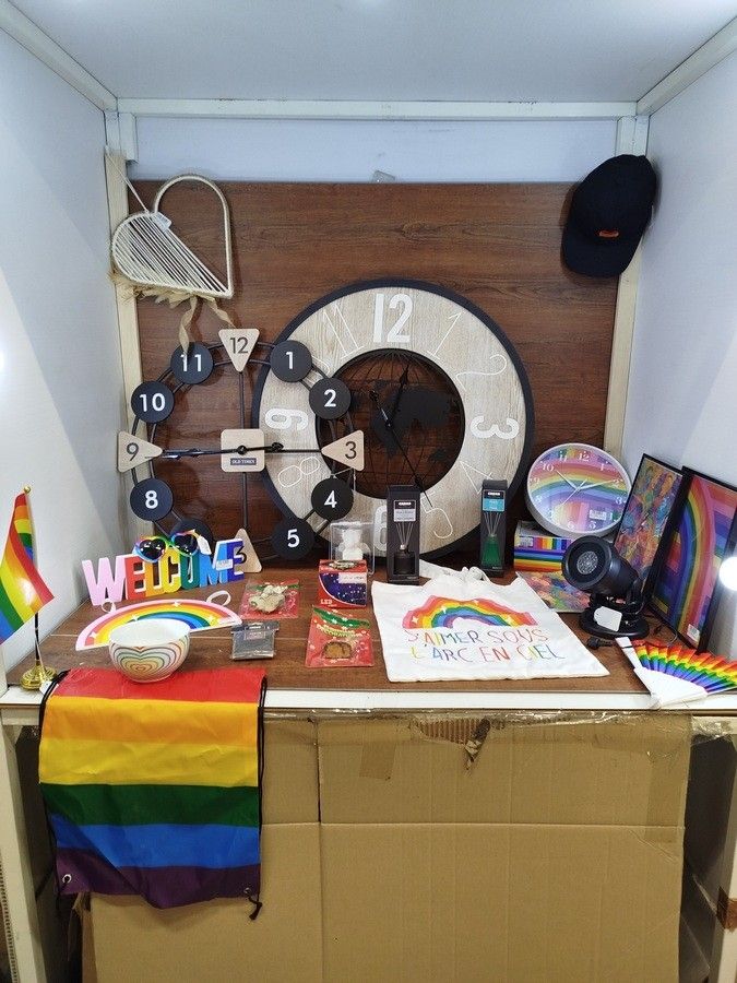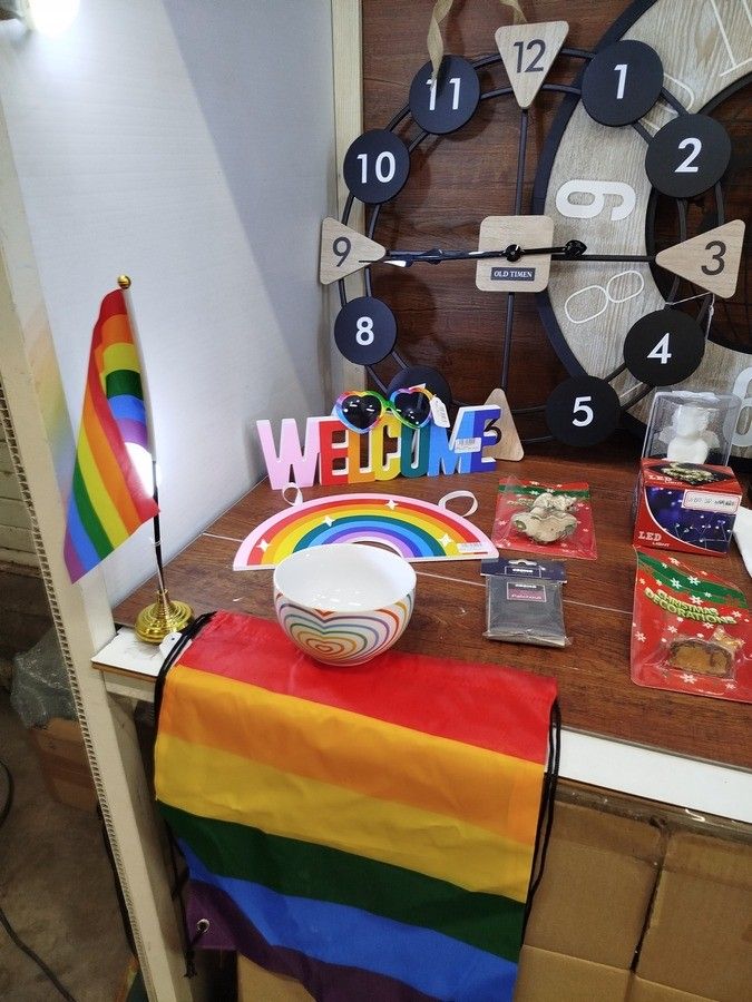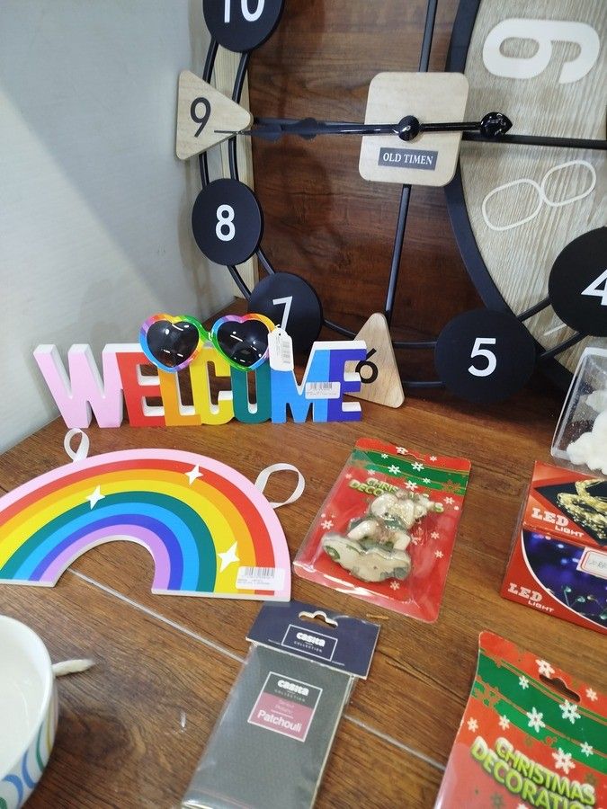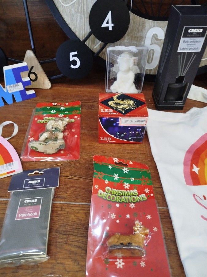 lot of about 100 various items including: clocks, trunks, garlands, flags, sunglasses, caps, decoration etc..