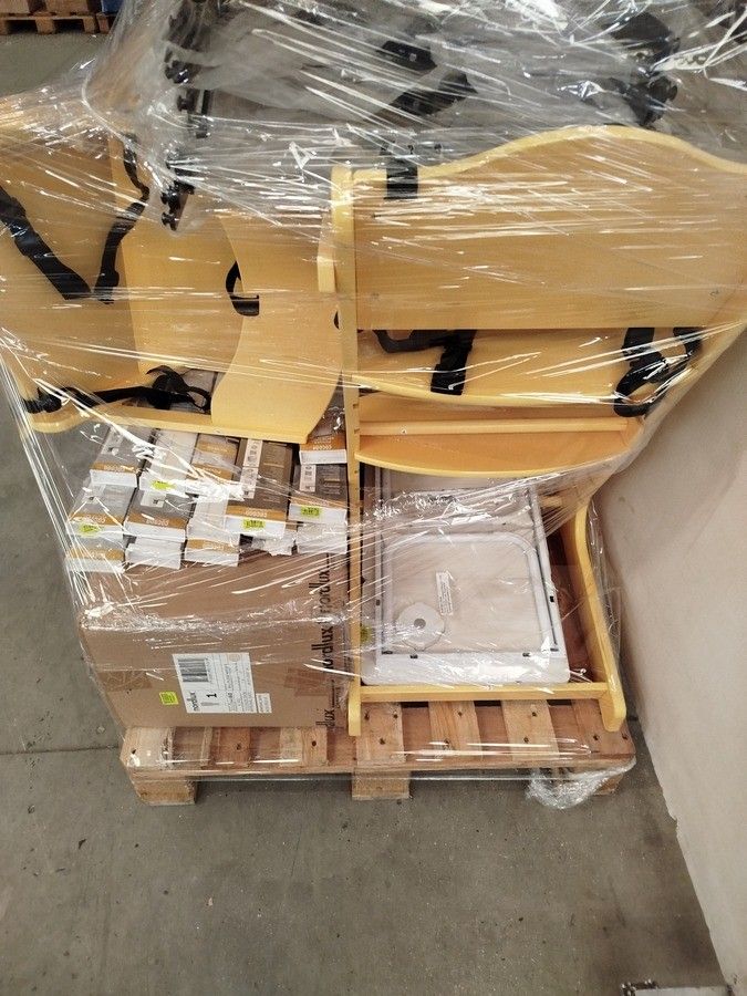 Batch of miscellaneous items including: chairs, high chairs, stools, rods, etc.