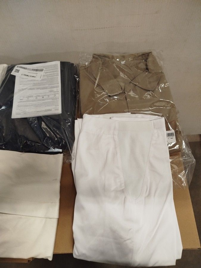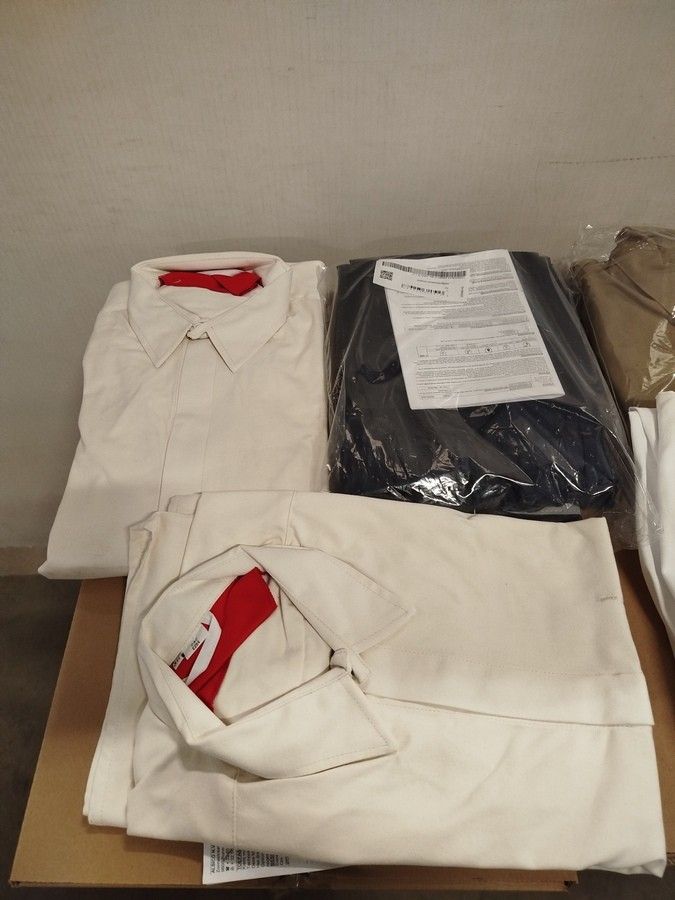 120 pieces of work clothing including: blouses, trousers and coats in various styles