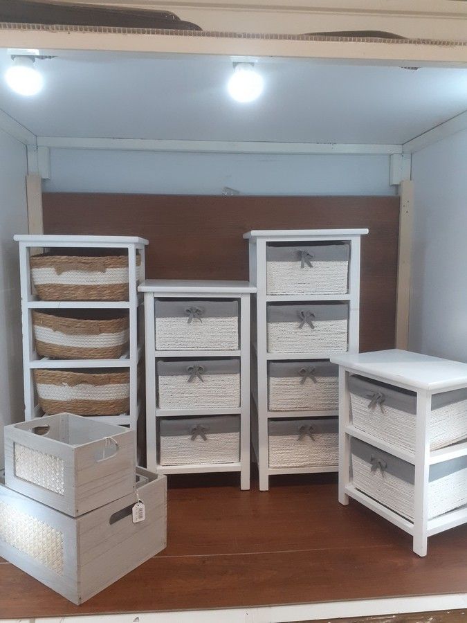 lot of 11 miscellaneous items including: 2 chairs, 3 wooden storage boxes, 6 wooden storage shelves with boxes