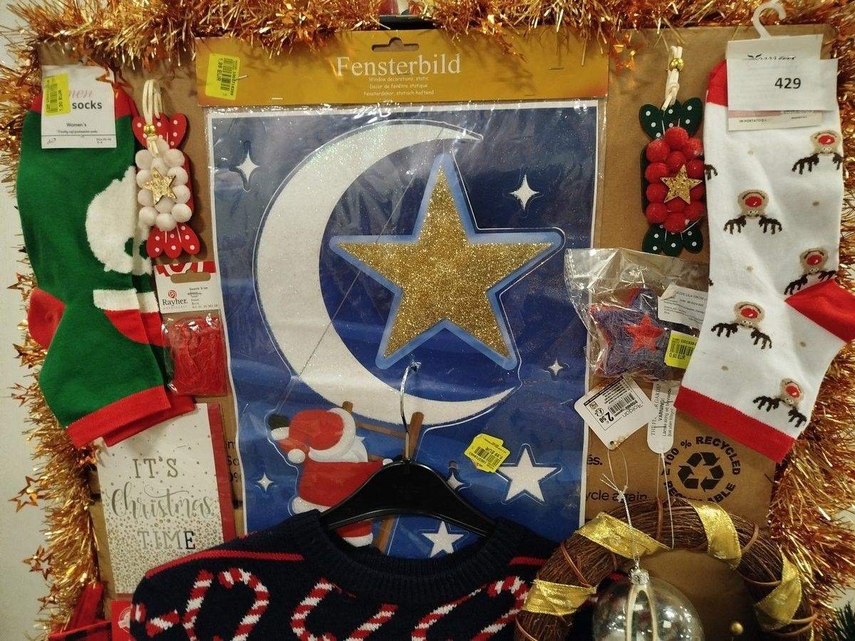 Set of 3 Christmas boxes including garlands, socks, textiles, baubles, stickers, etc.