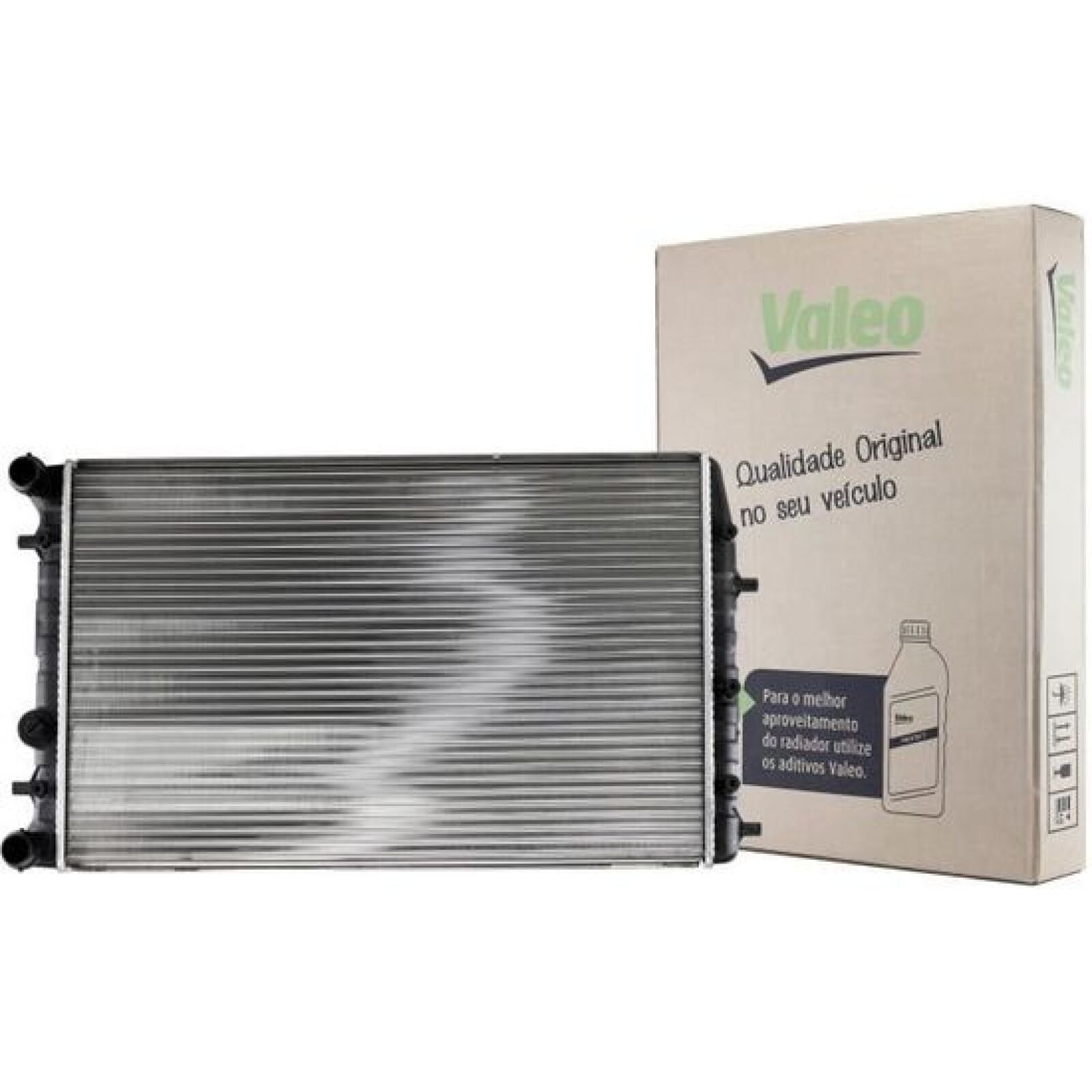 9780-484 / Engine radiator - VALEO - Aluminium - Mechanically joined fins - Ø inlet/outlet 32 mm - Thickness 23 mm - Polo, Fox, Ibiza III compatible - Dimensions 63.5 × 41.5 × 2.3 cm - Weight 3.86 kg /// AS NEW