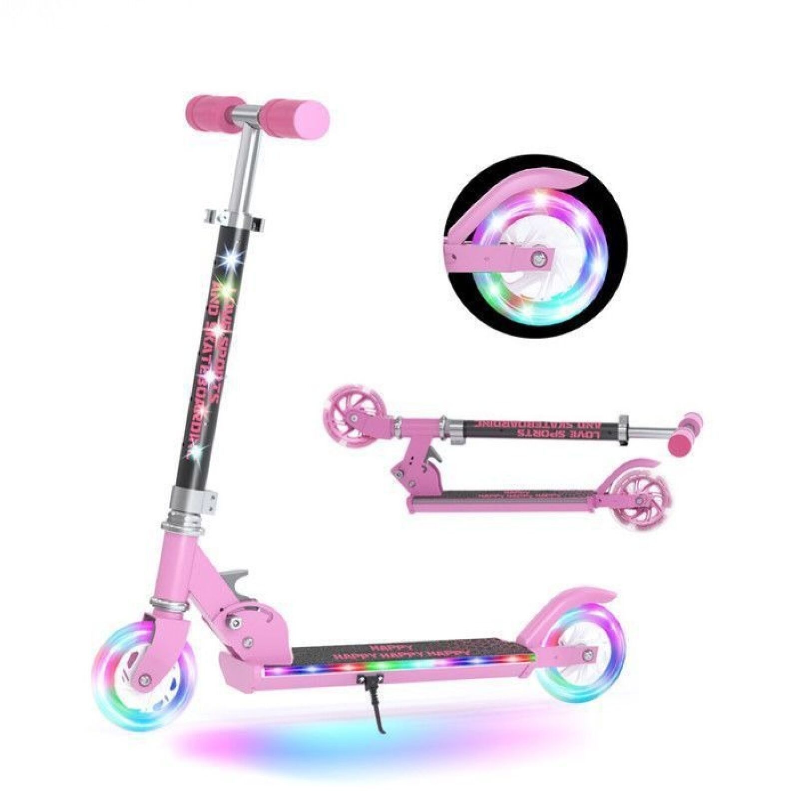 8070-190 / Children's scooter - TENBOOM - Kinder Scooter model - Adjustable handlebars (60 to 81 cm) - Foldable - Illuminated LED wheels - Rear brake - Aluminium frame - Weight limit: 50 kg - For children aged 3 to 10 - Dimensions: 64 x 33 x 80 cm - Weight: 2.45 kg /// TRACES OF USE