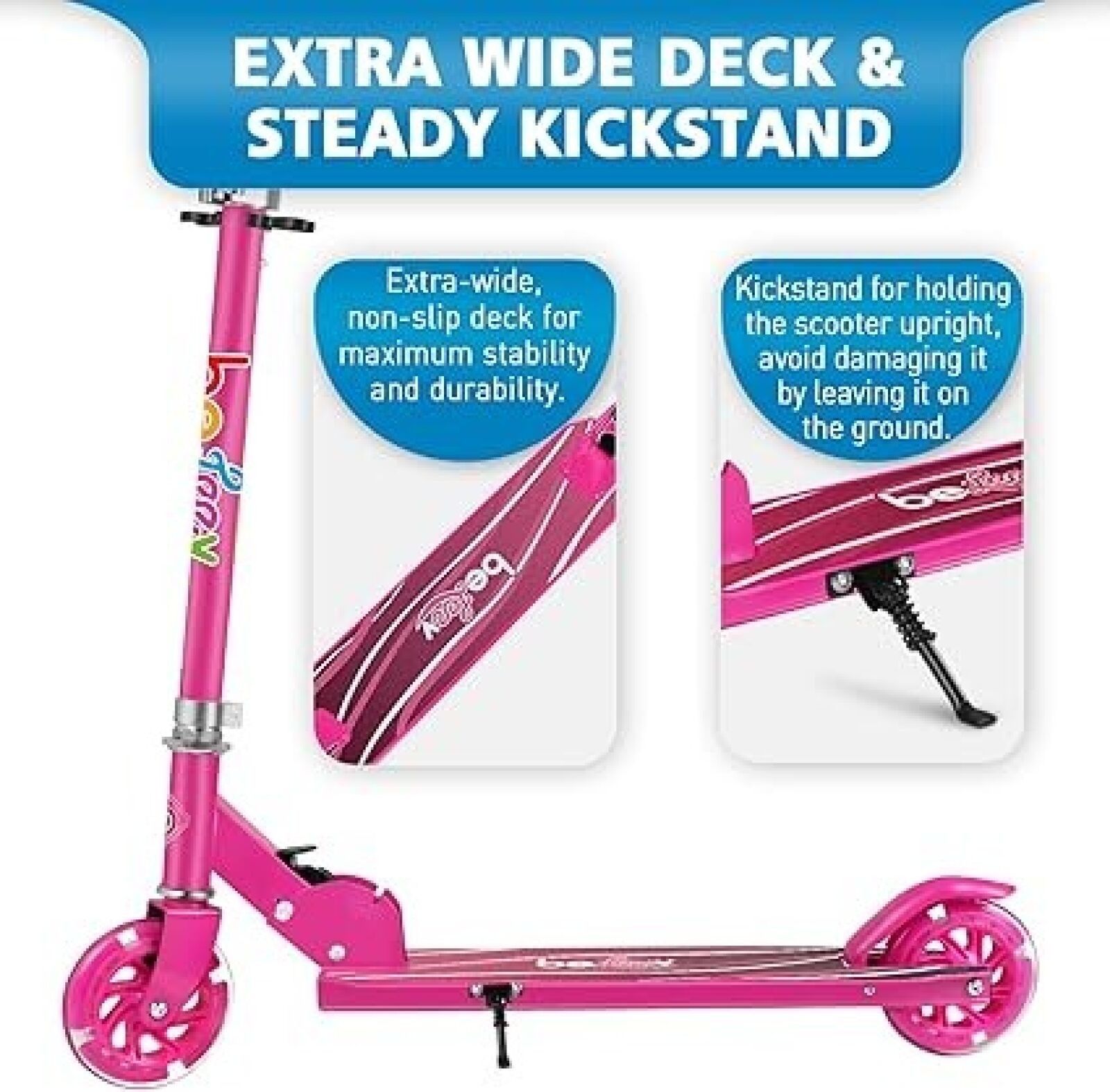 6759-753 / BELEEV v1 2-Wheel Foldable Scooter for Boys and Girls, Large Platform, Adjustable Handlebar Height - 3 to 12 Years (Pink) /// SECOND-HAND PRODUCT: rear wheel does not light up